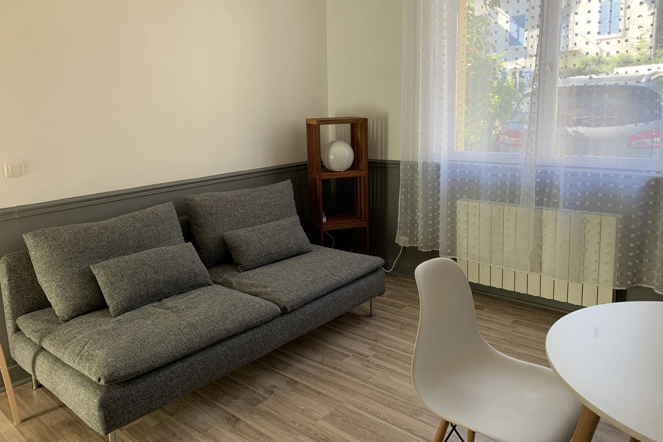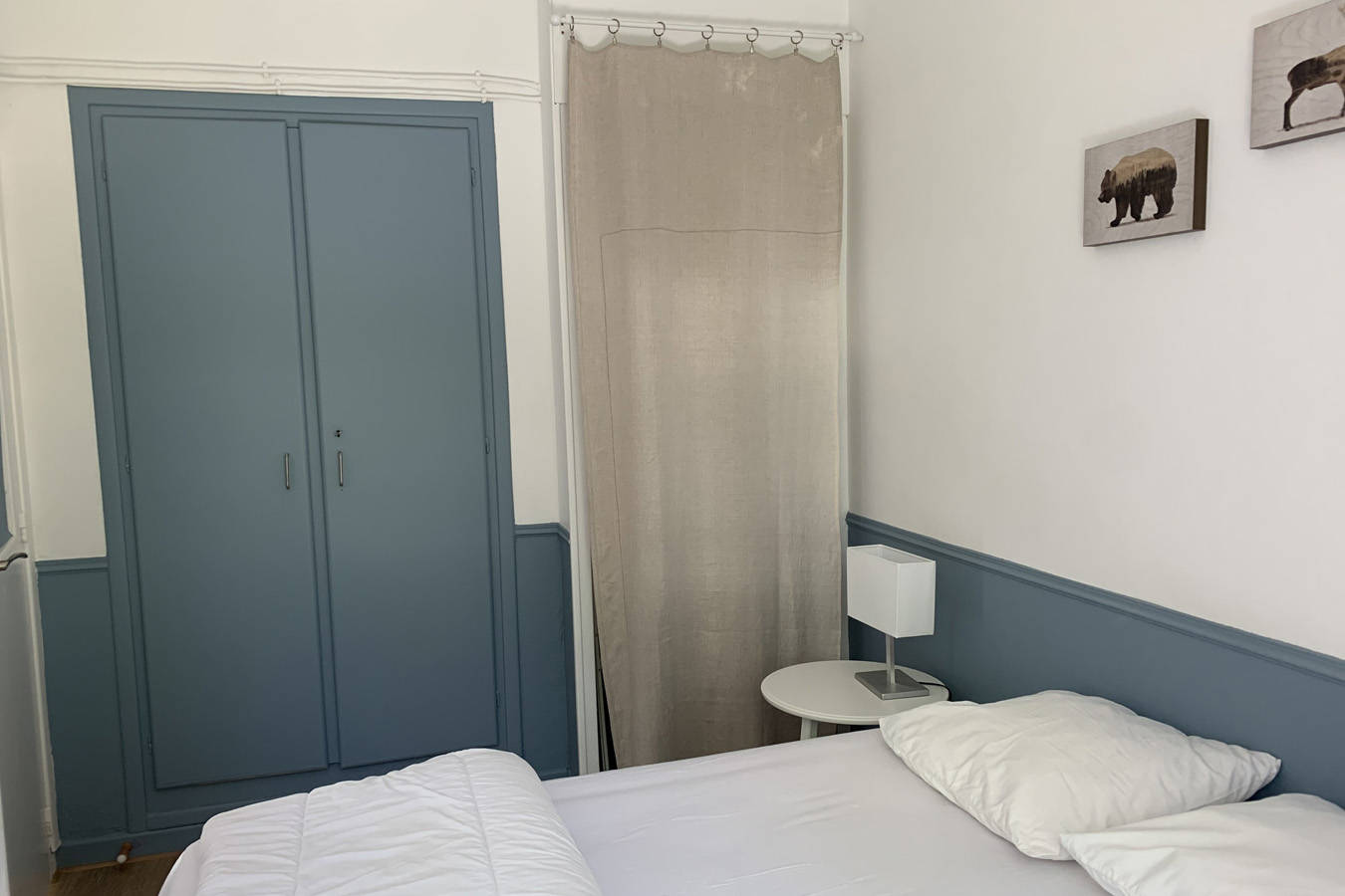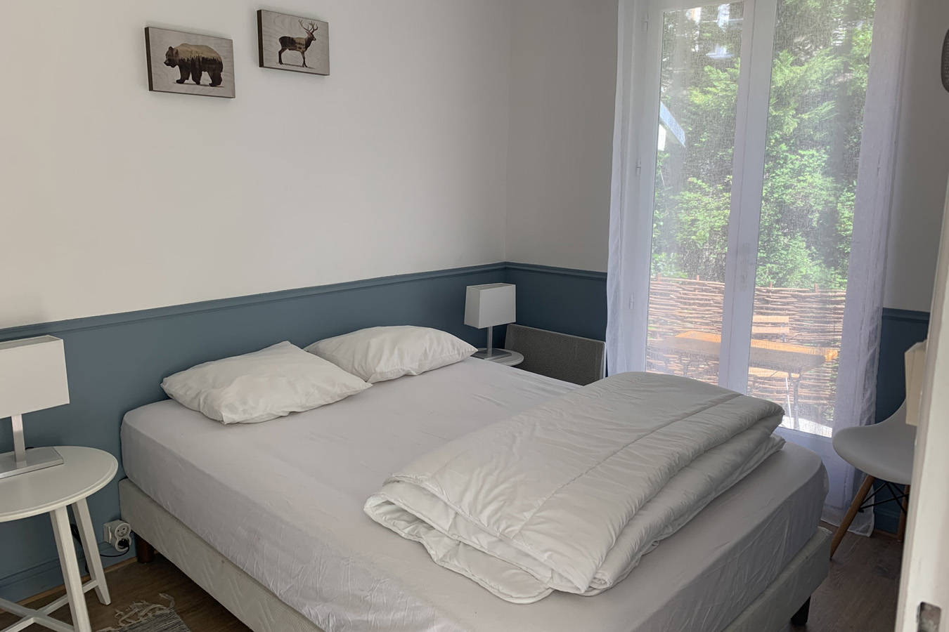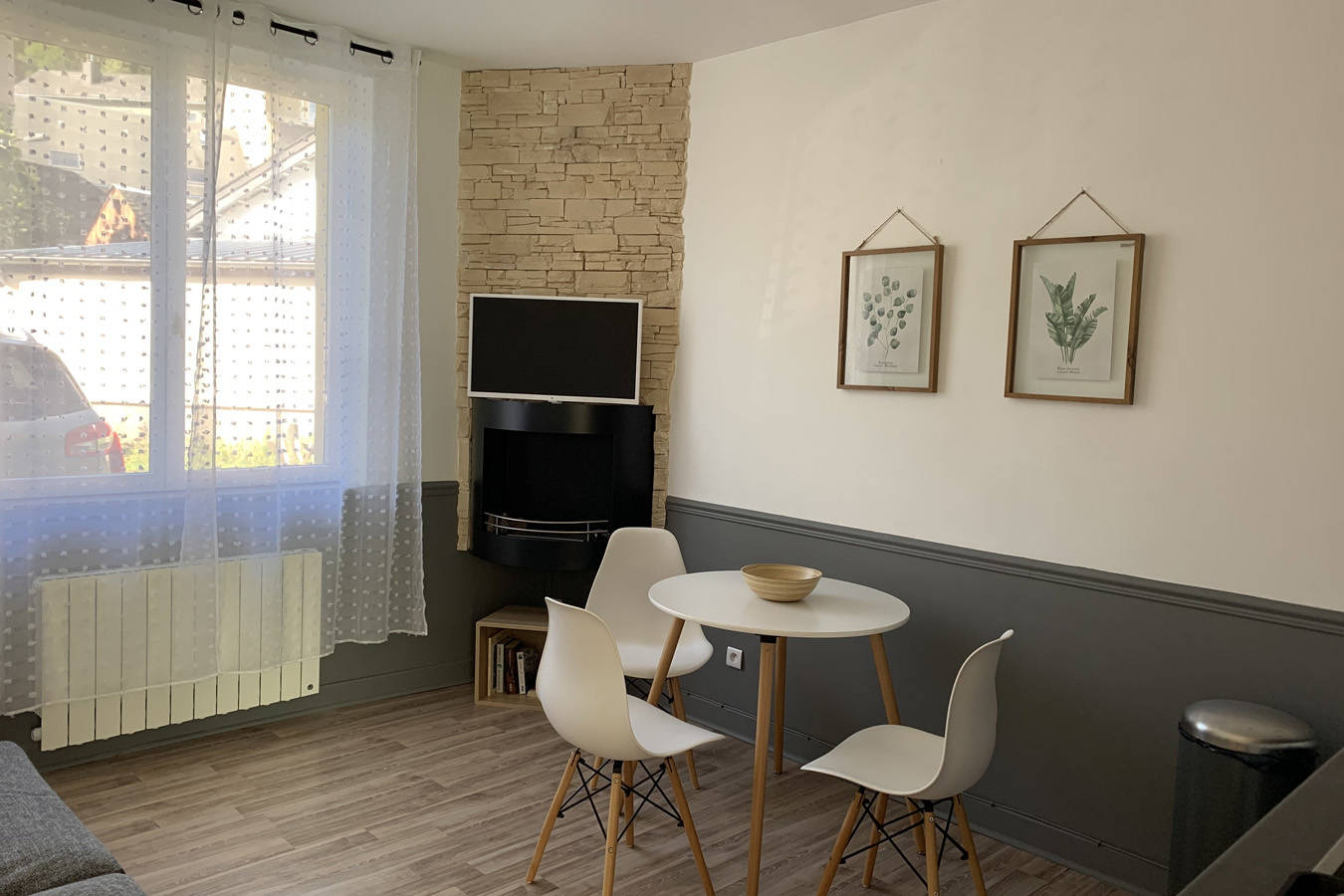 Appartement refait à neuf, deux pièces, séjour avec cuisine ouverte, une chambre lit 140, une salle d’eau avec douche. Situé en plein centre ville à moins de 3 minutes des thermes et face au Parc Fenestre.