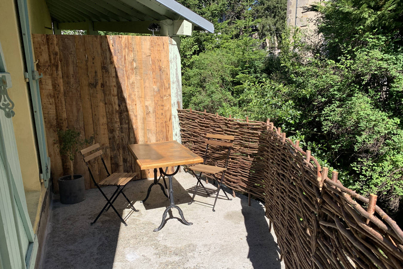 Cet appartement de plein pied comprend également une terrasse avec un salon de jardin. Il offre une vue depuis le balcon sur le ruisseau « Le Vendeix », face au Parc Fenestre.
