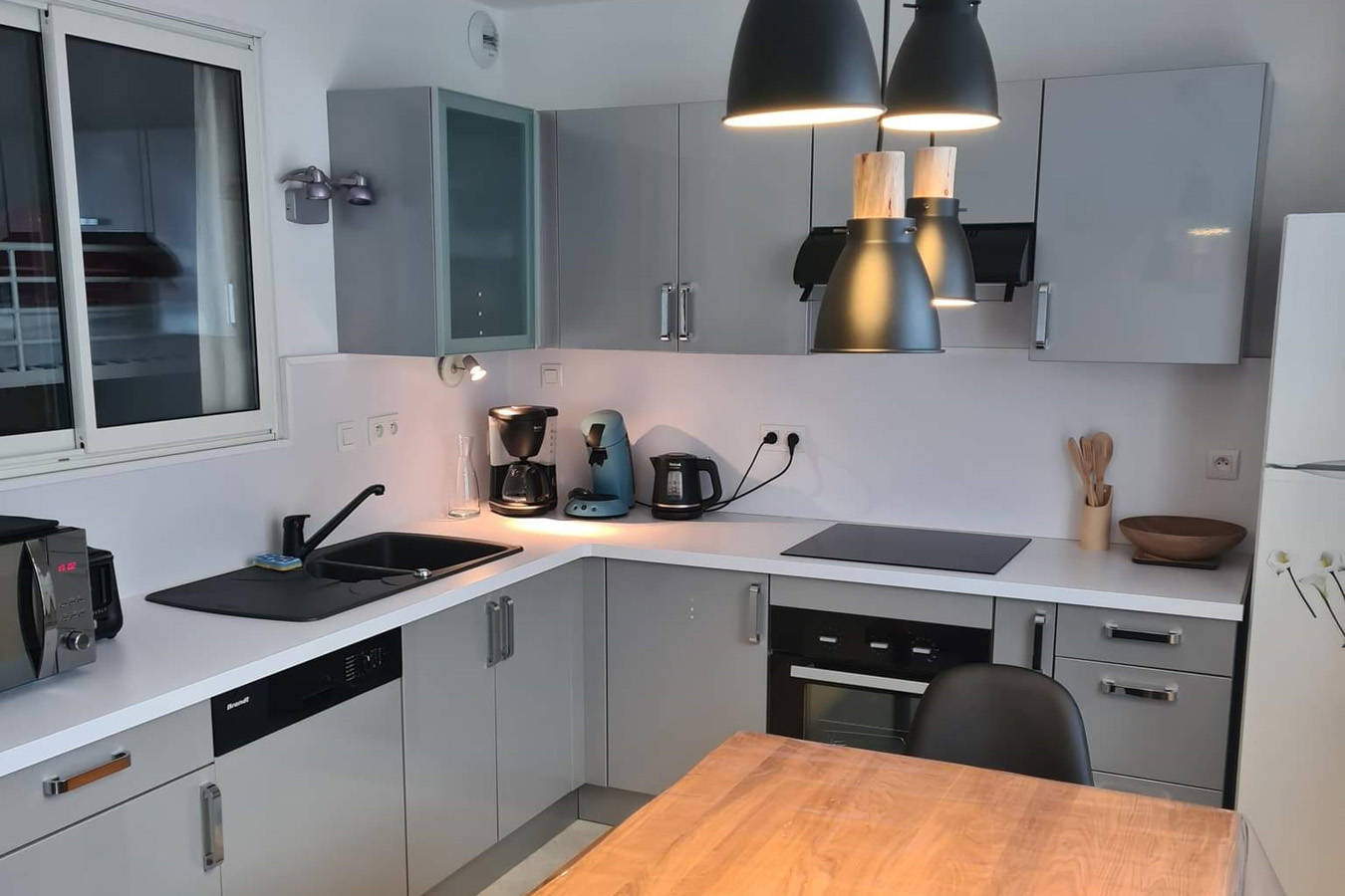 L’appartement se compose d’une agréable pièce à vivre avec cuisine ouverte entièrement équipée (réfrigérateur, congélateur, four, plaque vitrocéramique, lave-vaisselle, micro-ondes, cafetière filtre, cafetière Senseo, bouilloire, grille-pain, mixeur plongeant, jolie vaisselle…), un grand canapé convertible avec vrai couchage quotidien en 160, une belle chambre avec un lit 160 et une petite chambre cabine avec lits superposés en 90.