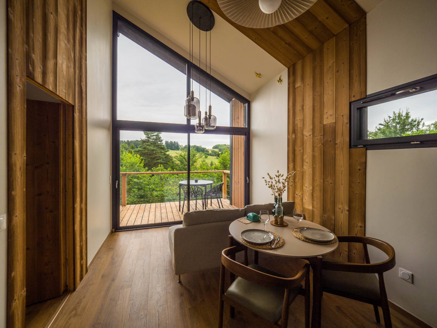 A la cime des arbres, la cabane Petite Ourse a été imaginée afin de vous permettre de vivre une expérience unique en toute intimité. Nous avons créé ce design unique avec bardage noir et de grandes baies vitrées afin de profiter d’un paysage arboré aussi bien depuis l’intérieur que sur(…)