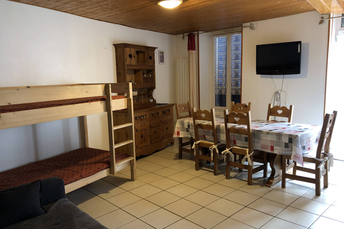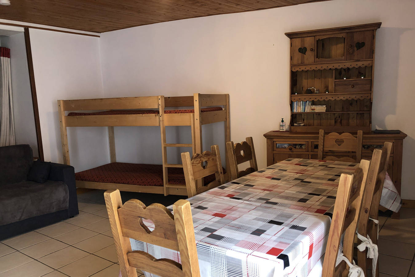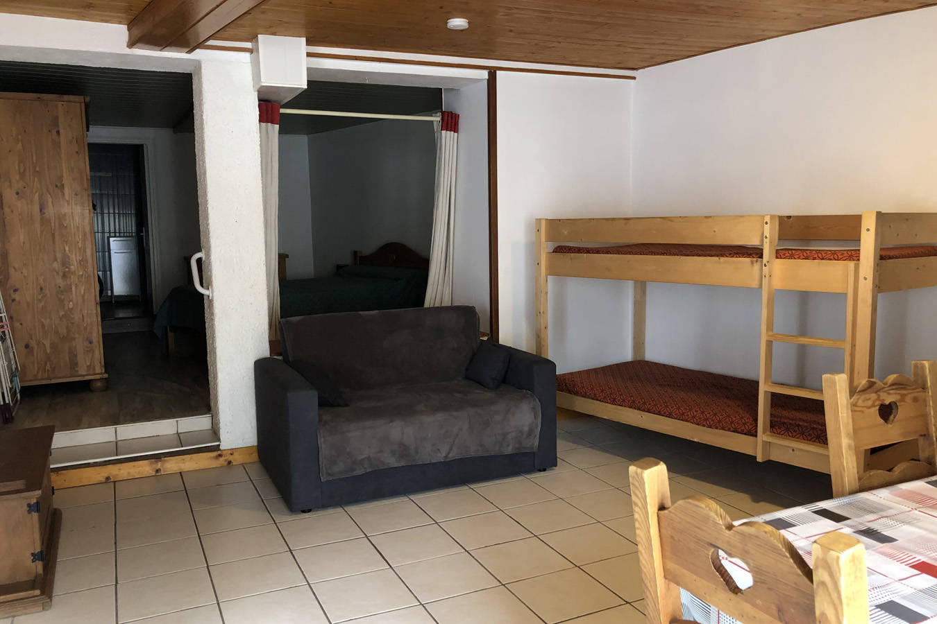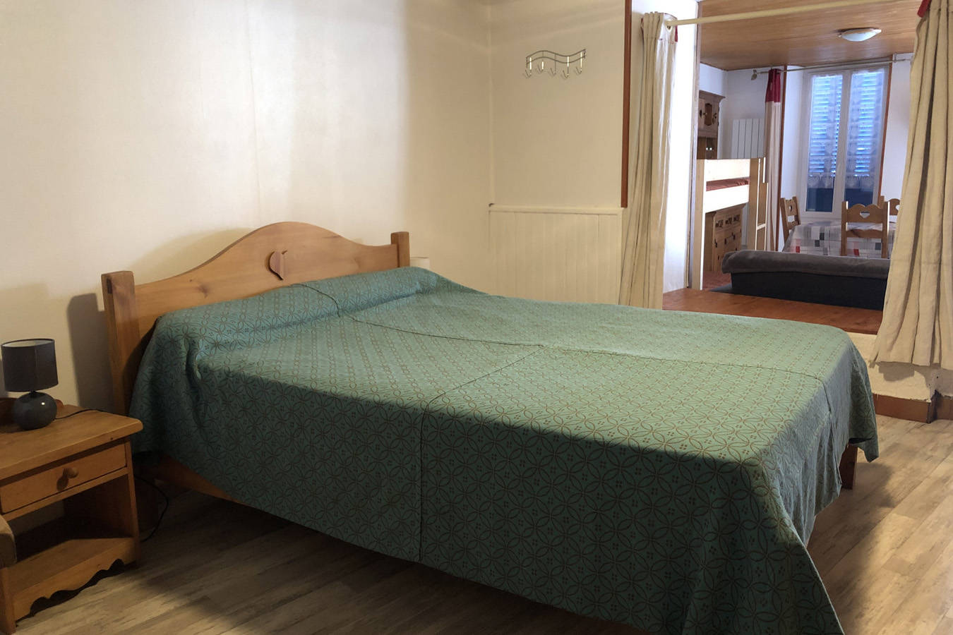 Meublé de style montagnard, séjour de 30 m², qui se compose d’une partie cuisine et d’un séjour avec une grande table, un canapé et lits superposés. Idéal pour les curistes et les vacanciers. L’espace nuit est séparé du séjour par un rideau avec une chambre (lit 2 personnes). Les pièces(…)