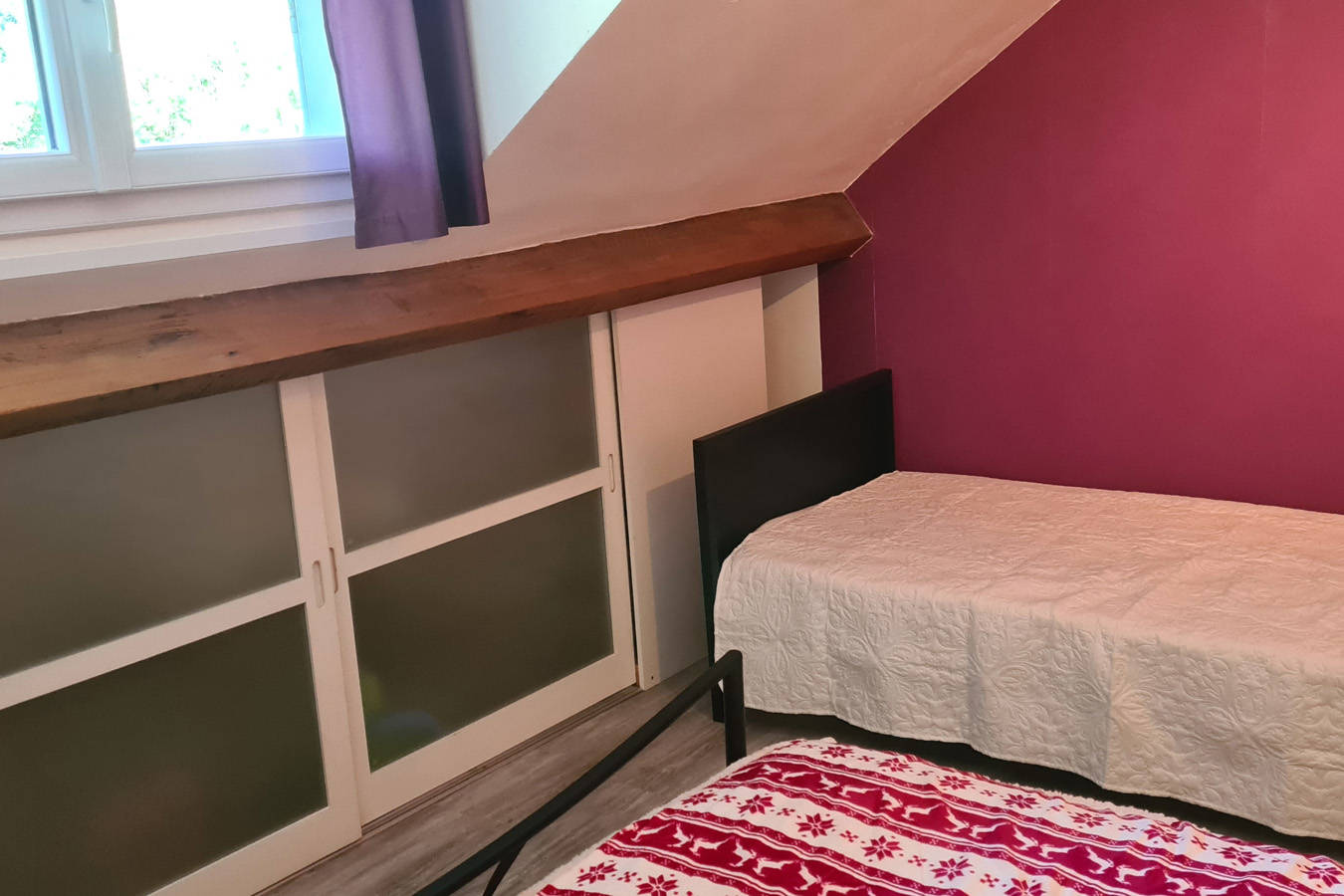 1 chambre avec lit 140 et 1 lit 90, rangements, lit bébé.