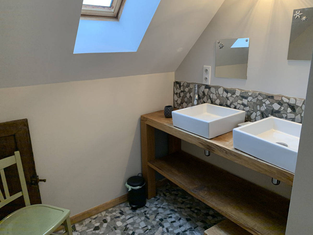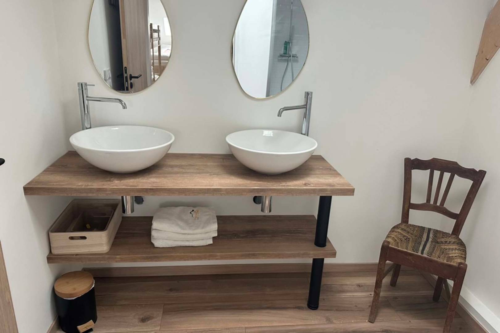 -1 chambre avec lit 160 cm grand confort avec douche et meuble vasque ;