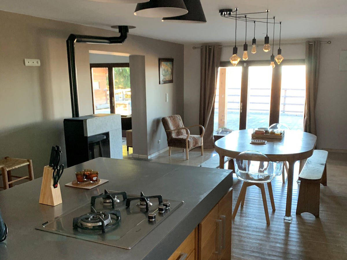 -SAM (table 10-14 personnes) avec un grand poêle à granulés haut de gamme RIKA & cuisine américaine moderne sur équipée