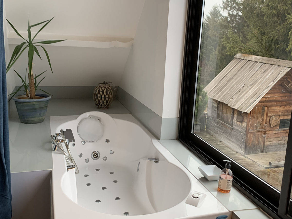 Jardin clos dominant une prairie privative. Jacuzzi extérieur 6 places