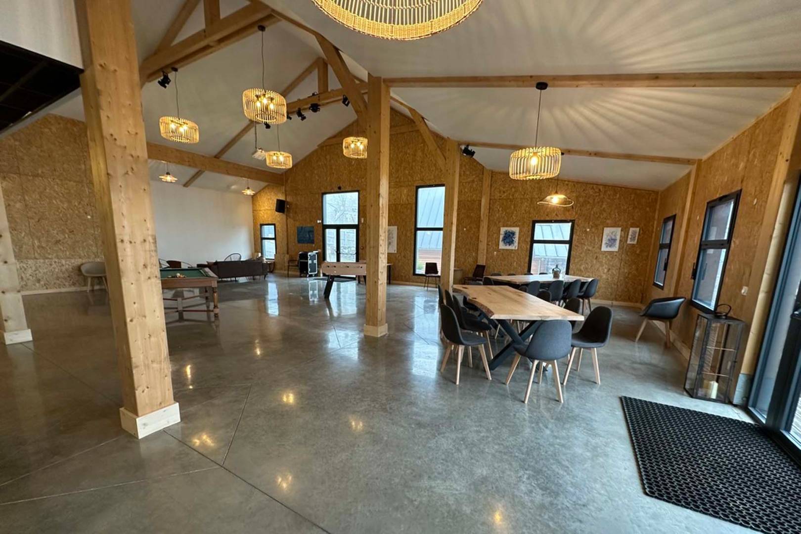 RDC : une salle de réception de 180m2 équipée de billard, baby foot, sono, vidéo grand écran et lumières d’ambiance ainsi qu’une cuisine semi-profesionelle et sanitaires PMR.