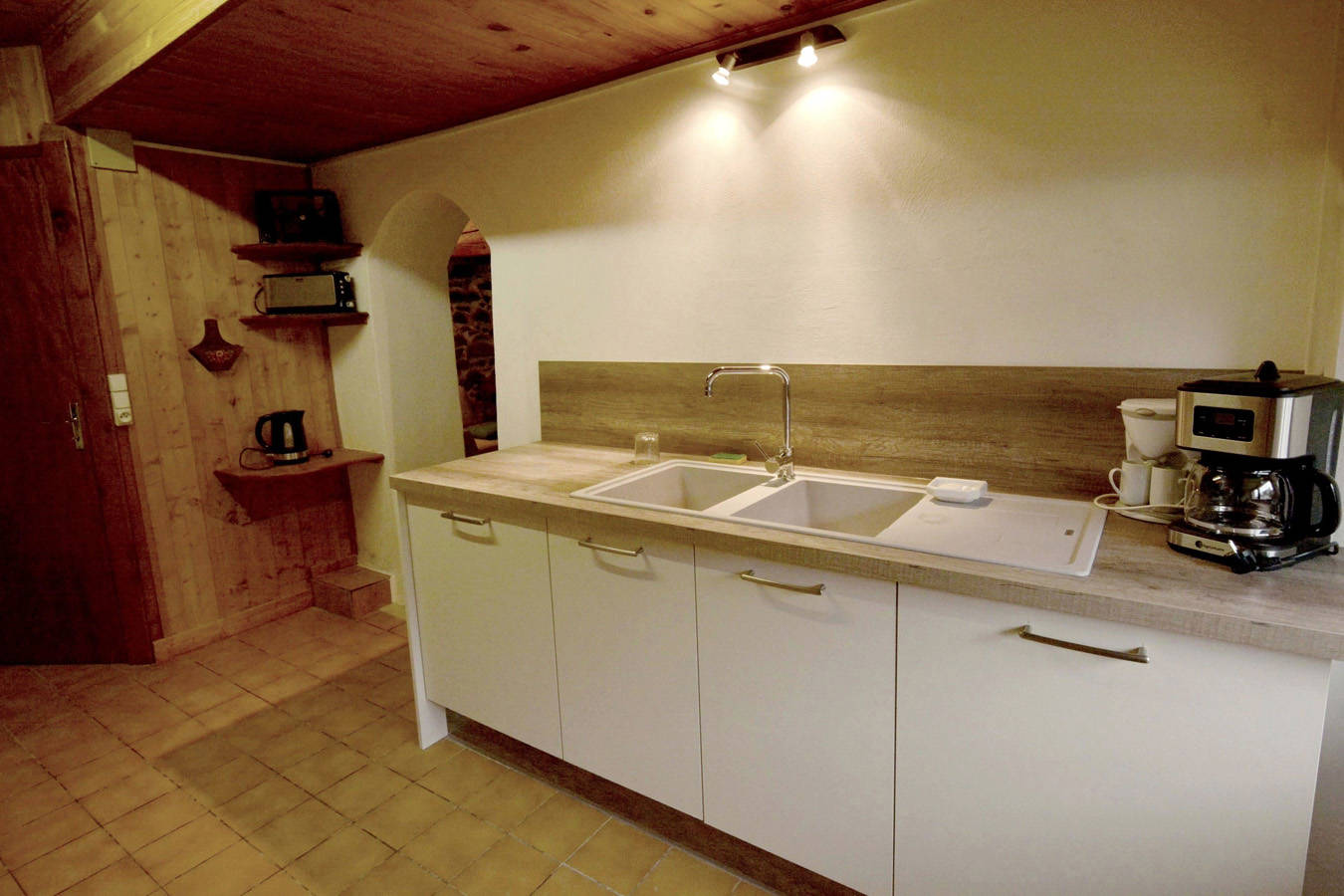 Belle maison typique auvergnate avec une pièce principale en pierres de pays et un grand cantou (cheminée) pour un bon feu de cheminée en hiver. Une cuisine aménagée très bien équipée. Une salle d’eau au rez-de-chaussée avec un WC.