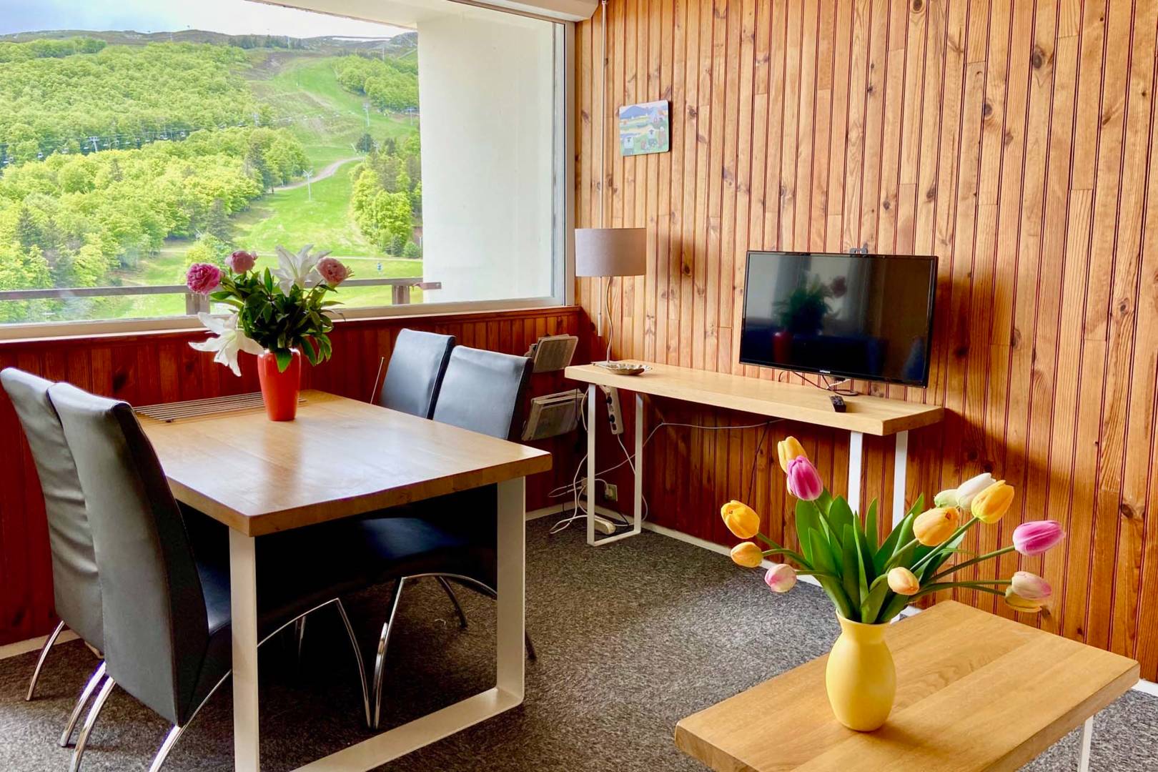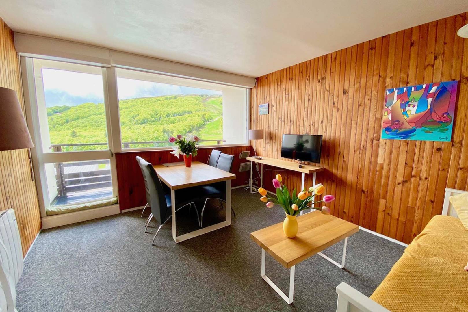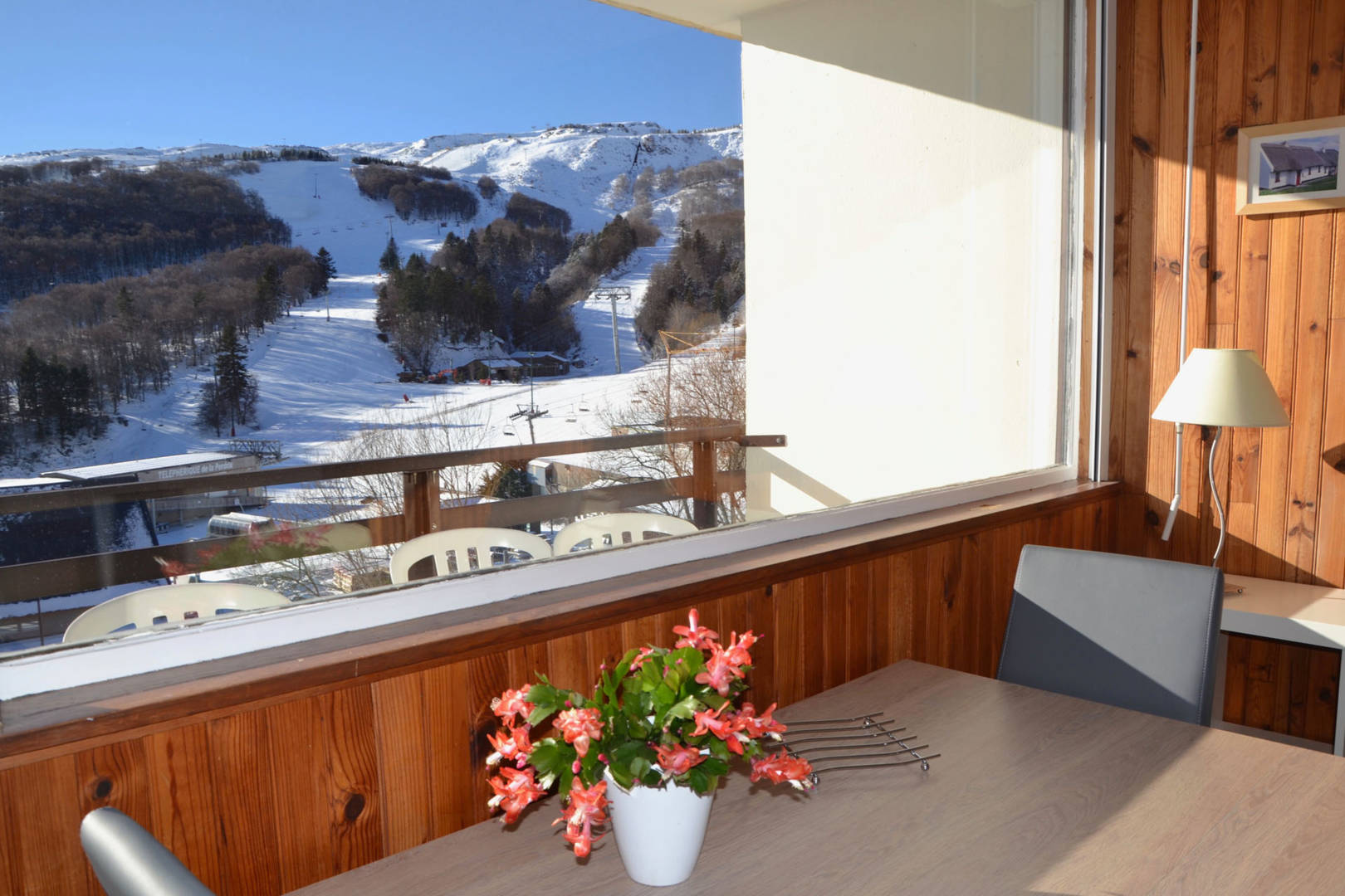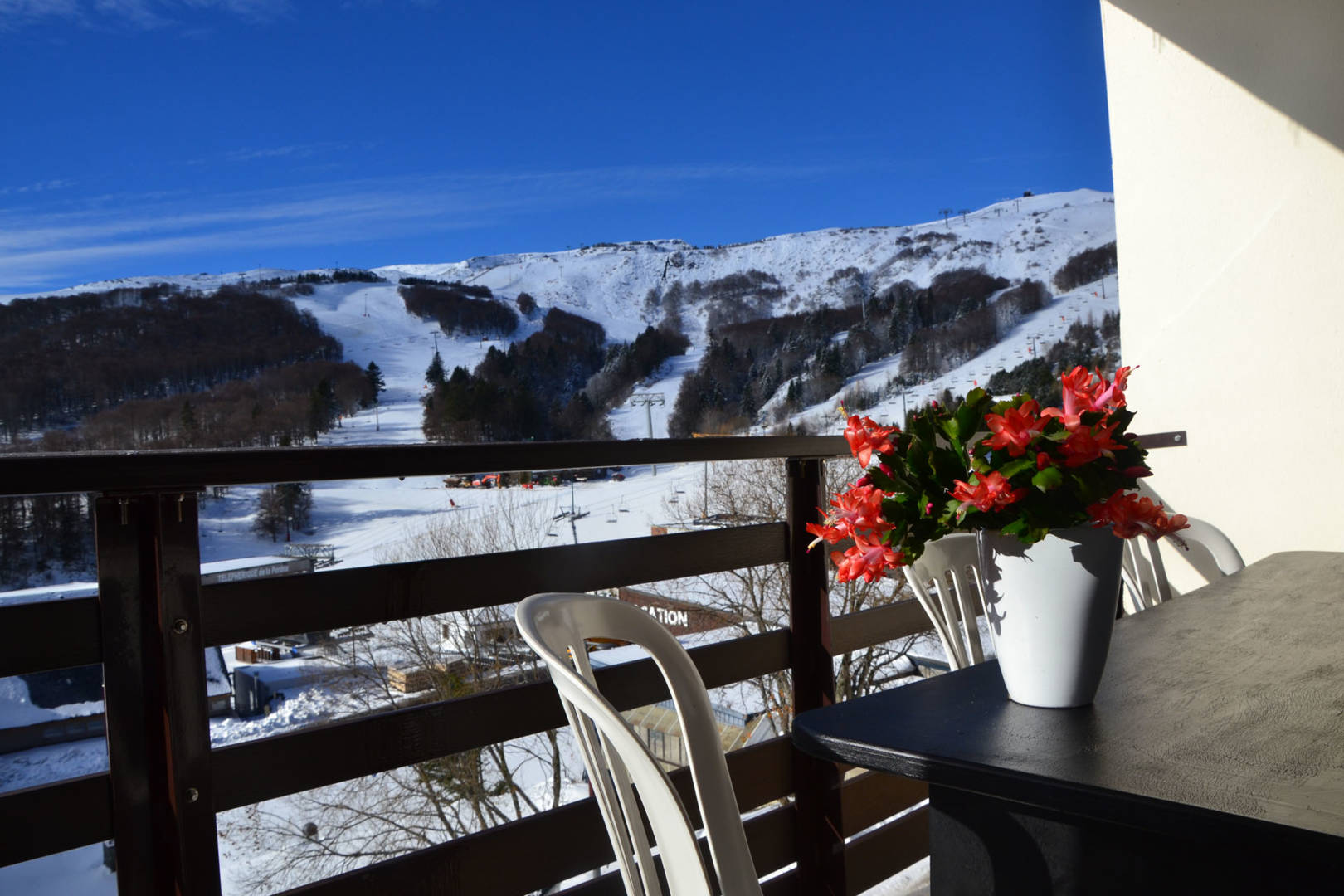 Orienté plein sud avec sa vue panoramique sur la montagne et les pistes de ski de SUPER BESSE. Balcon équipé d’un salon de jardin, agréable pour les repas ou l’apéritif avec une vue splendide sur le coucher de soleil.