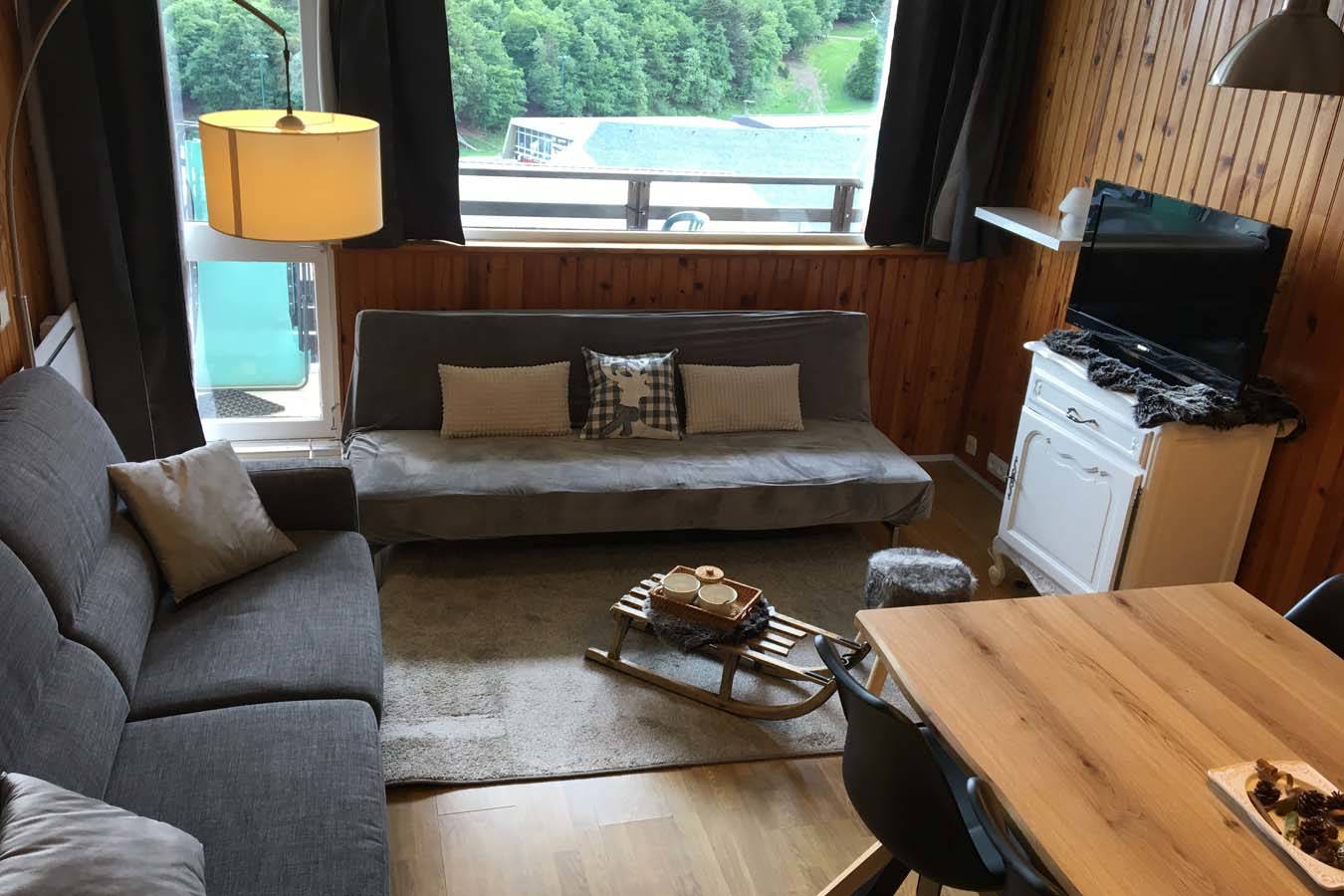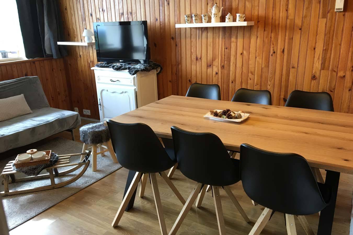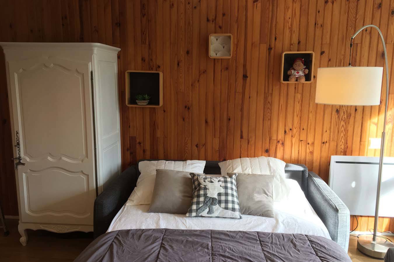 – Un séjour avec un canapé convertible avec un bon matelas 140, une télévision et un rehausseur pour les petits.