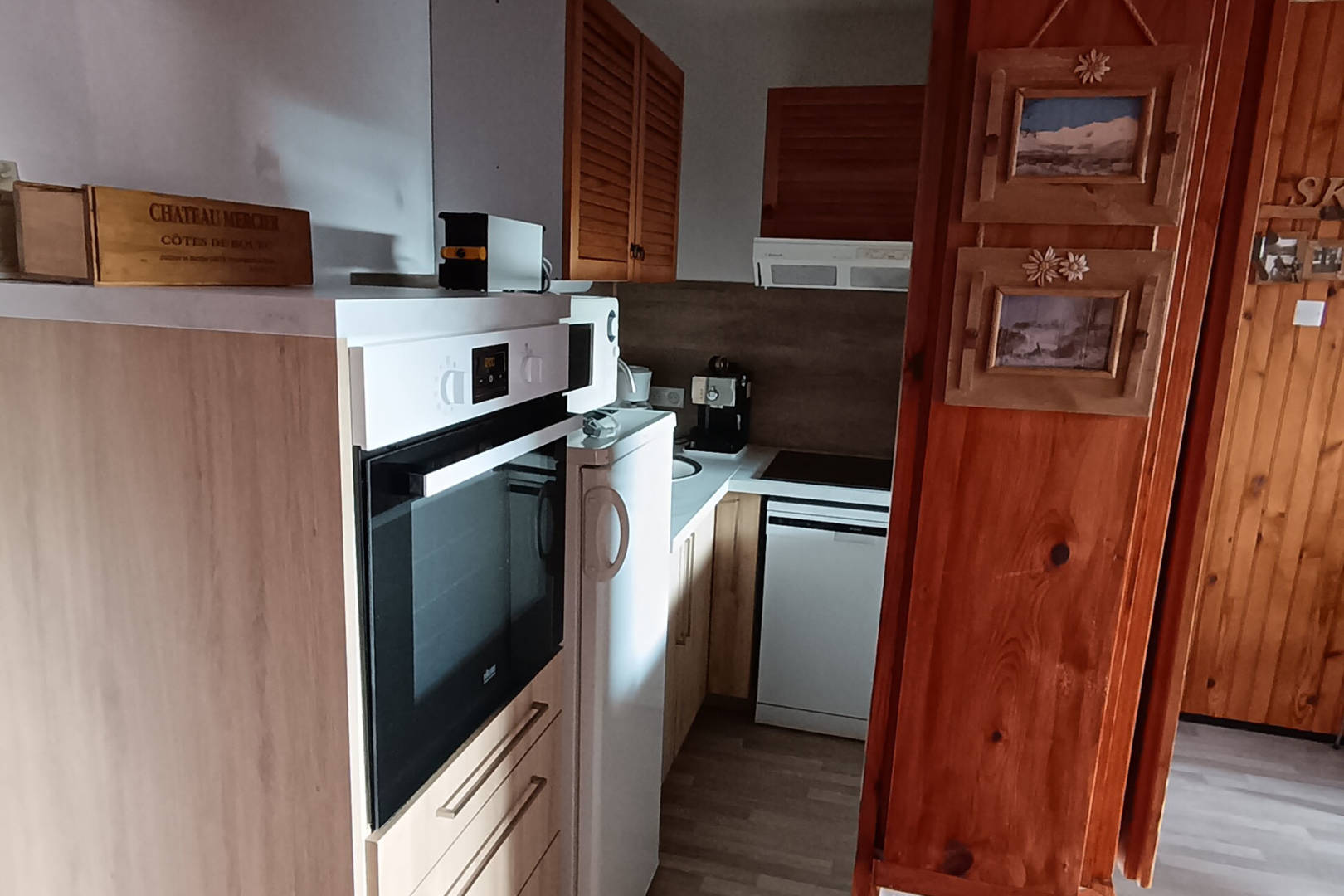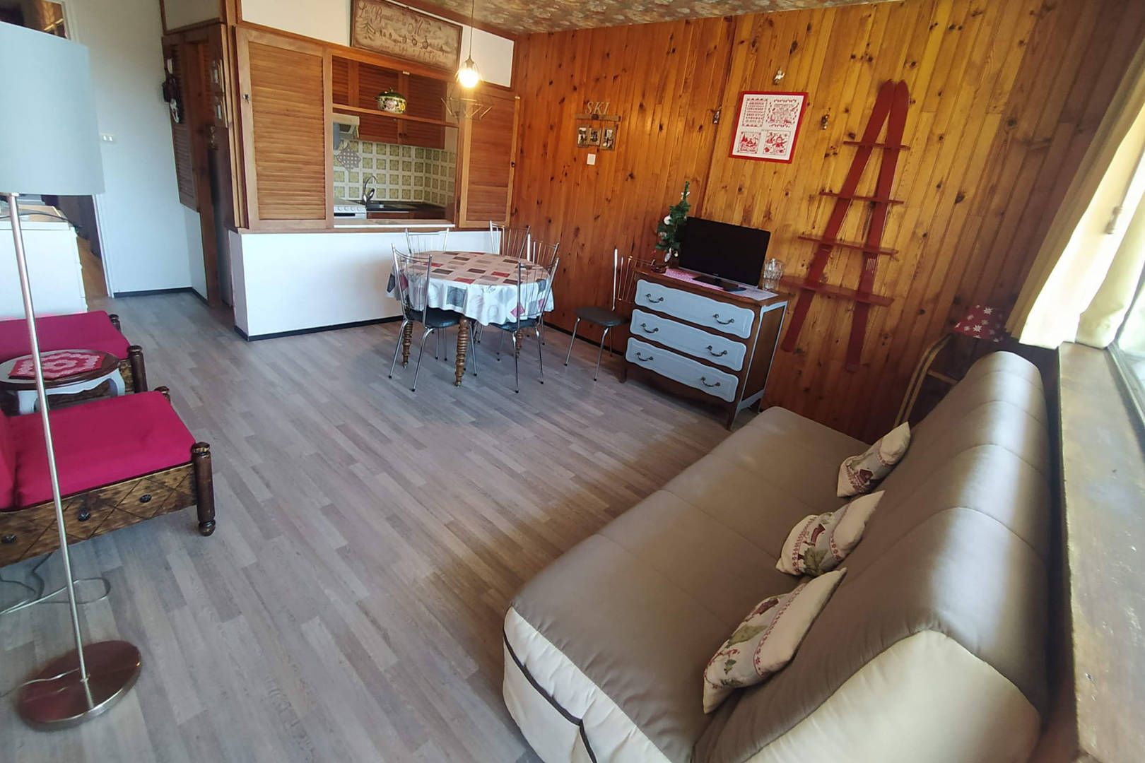 Appartement pour 4 personnes et 1 nourrisson situé au 3ème étage, au pied des pistes avec garage privé pour mettre voiture, skis, raquettes l’hiver et vélos l’été.