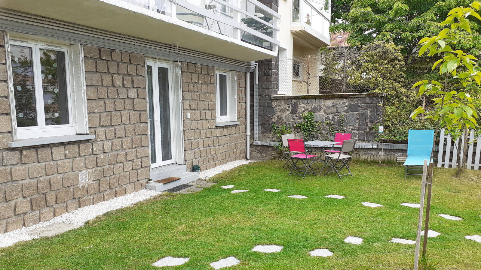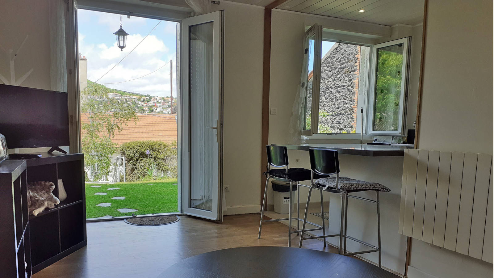 F2 de 37m², très bon état au rez-de-jardin du chalet des propriétaires. Situé en hauteur dans un petit havre de paix, lumineux, jardin arboré privatif. Accès par des escaliers extérieurs.