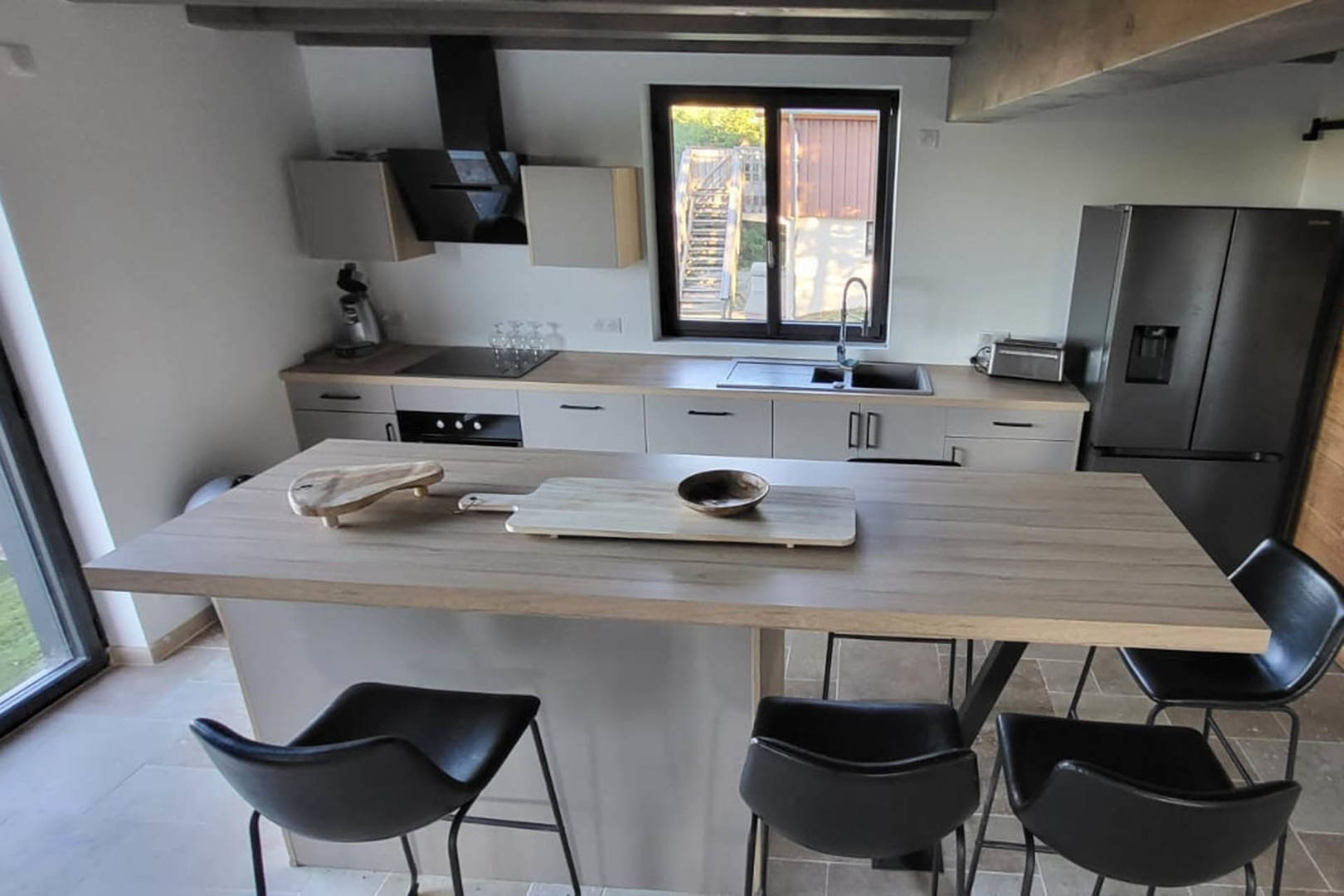 Cuisine équipée (four électrique, micro-ondes, lave-vaisselle, grille-pain…) Arrière cuisine (machine à laver)
