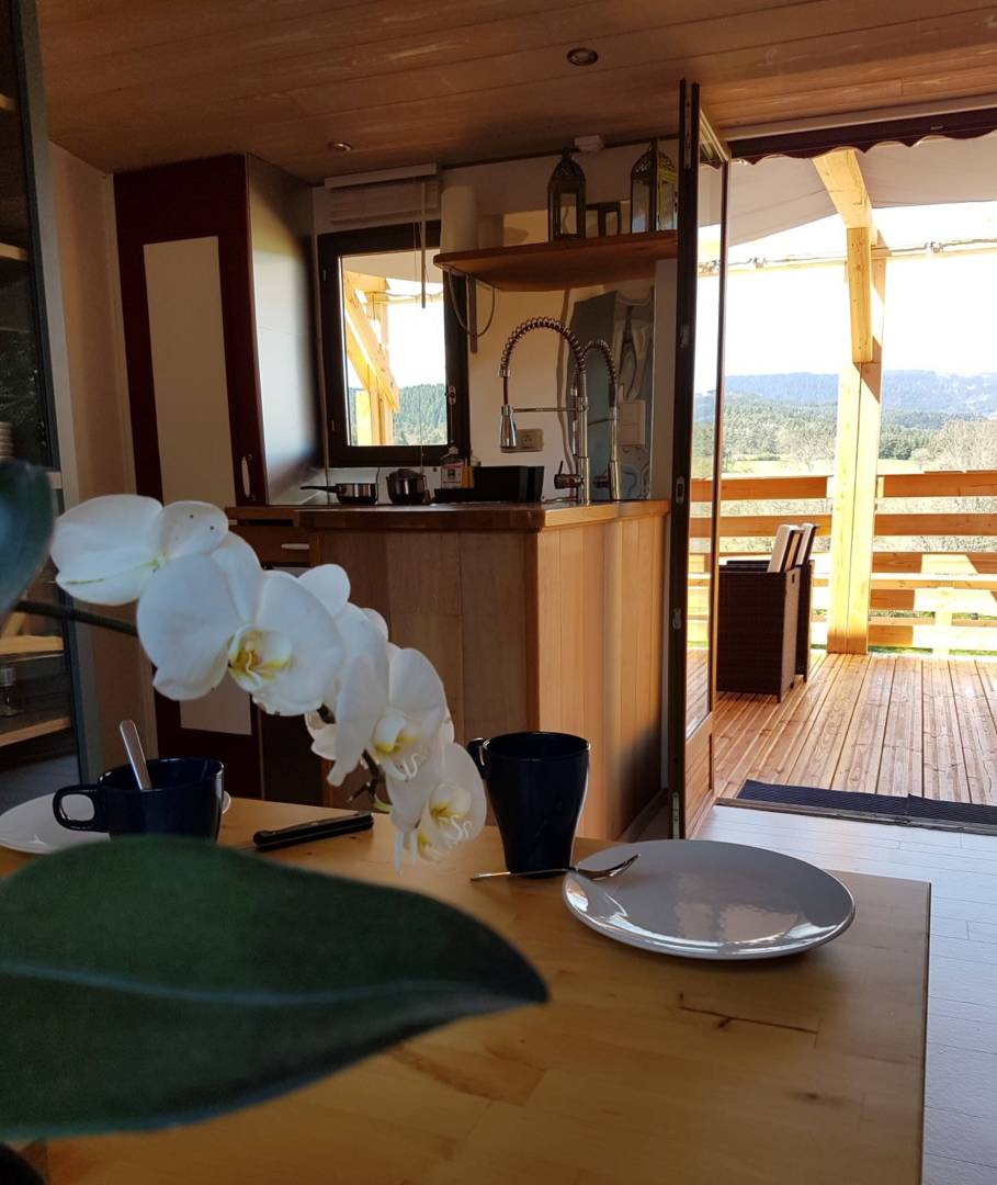 Adjacent Château de Riols du 12e siècle, ce chalet est idéal pour vos séjours entre amis, en couple ou en famille dans le Livradois. En pleine campagne auvergnate, au calme, et disposant d’une terrasse de 30m2 avec une magnifique vue sur le Forez, ce chalet est situé à 10 min d’Ambert. Il vous permettra de vous ressourcer et de vous reposer confortablement. Il dispose de 2 chambres, 1 équipée d’un lit de 140 x 190 et l’autre avec 2 lits superposés. Le salon est équipé d’un canapé convertible en couchage de 160 x 190 très confortable. Les matelas sont neufs. Salle de bain avec douche balnéo. WC séparés. Wifi illimité. Plaques à induction, frigo et four dans la cuisine. Parfait pour les vacances ou week ends. Dans un environnement bucolique, avec chemins de randos et balades alentours, près d’un étang, petits ruisseaux et forêts. La nationale menant à Ambert en quelques minutes est accessible immédiatement.