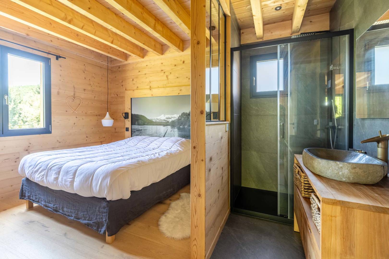 Situé à Murol, à quelques pas du lac Chambon, le chalet Le Chambois