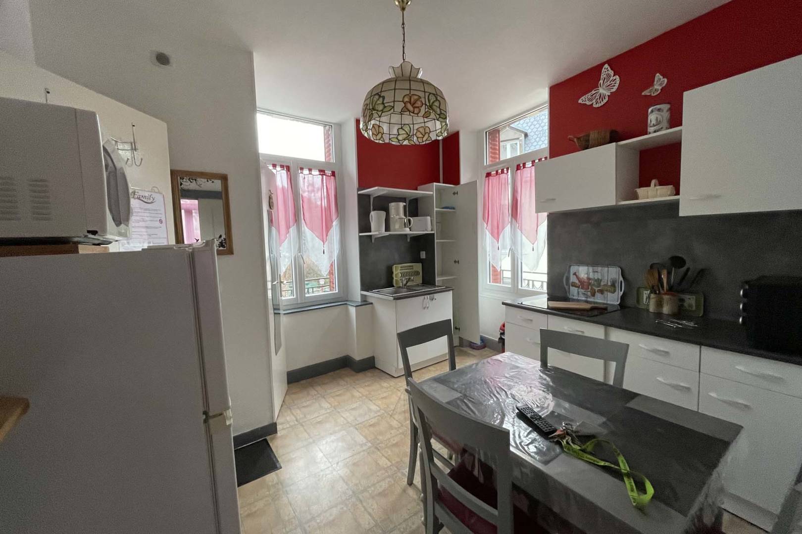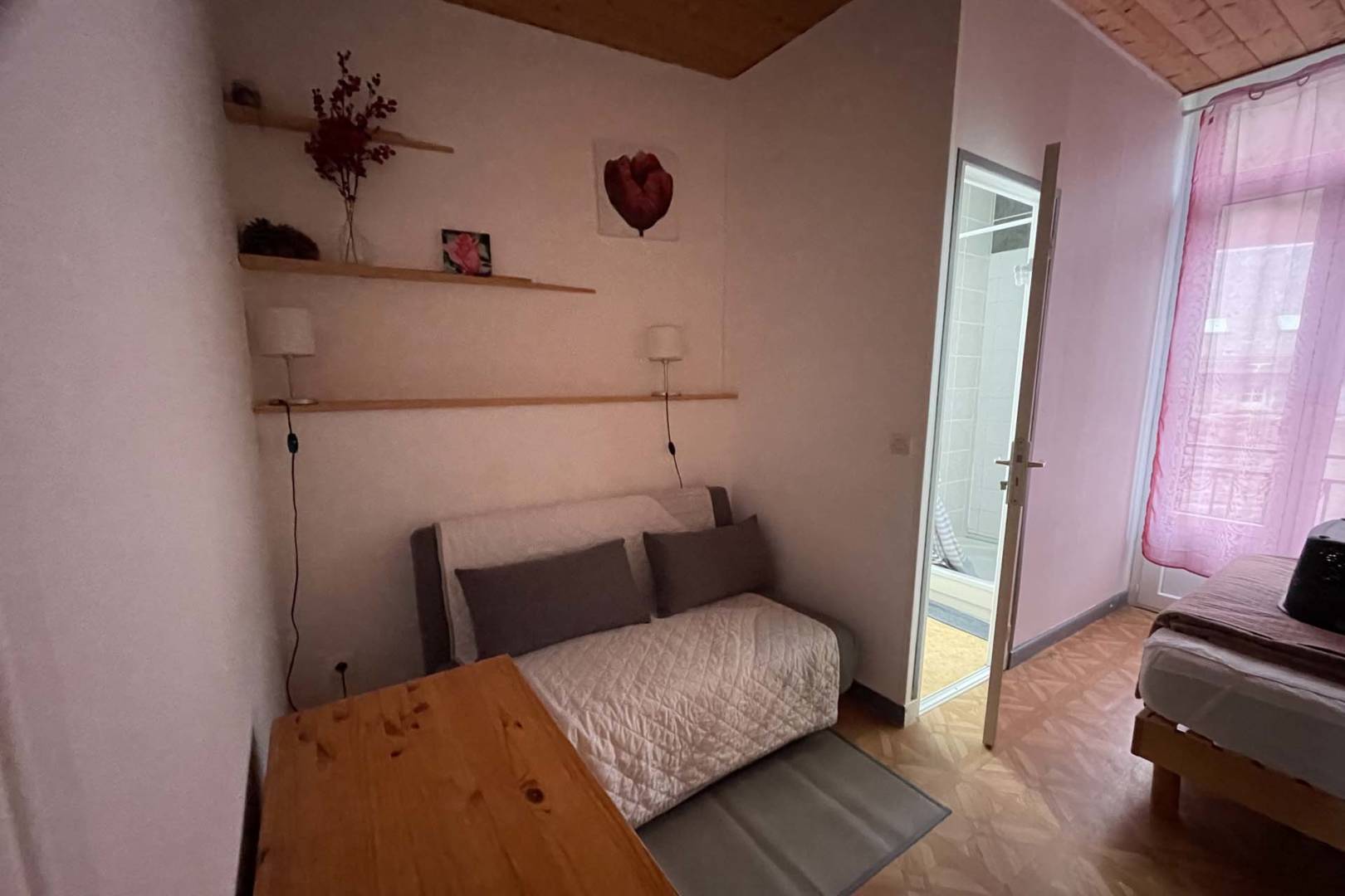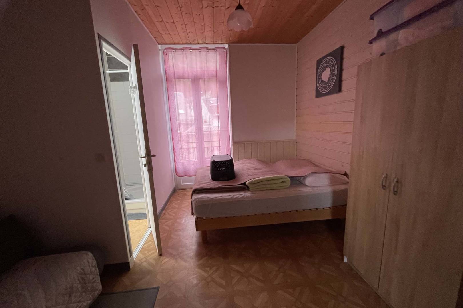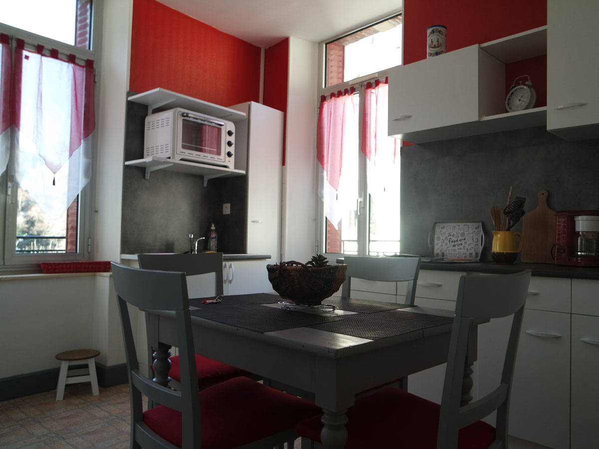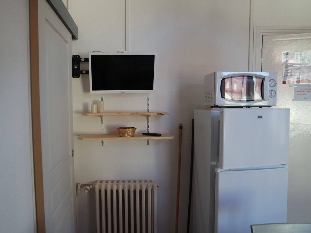 Appartement au 1er étage comprenant : Cuisine aménagée tout confort avec TV écran plat, chambre avec 1 lit de 2 pers avec coin TV et son canapé NON convertible, WC indépendant et salle d’eau indépendante.