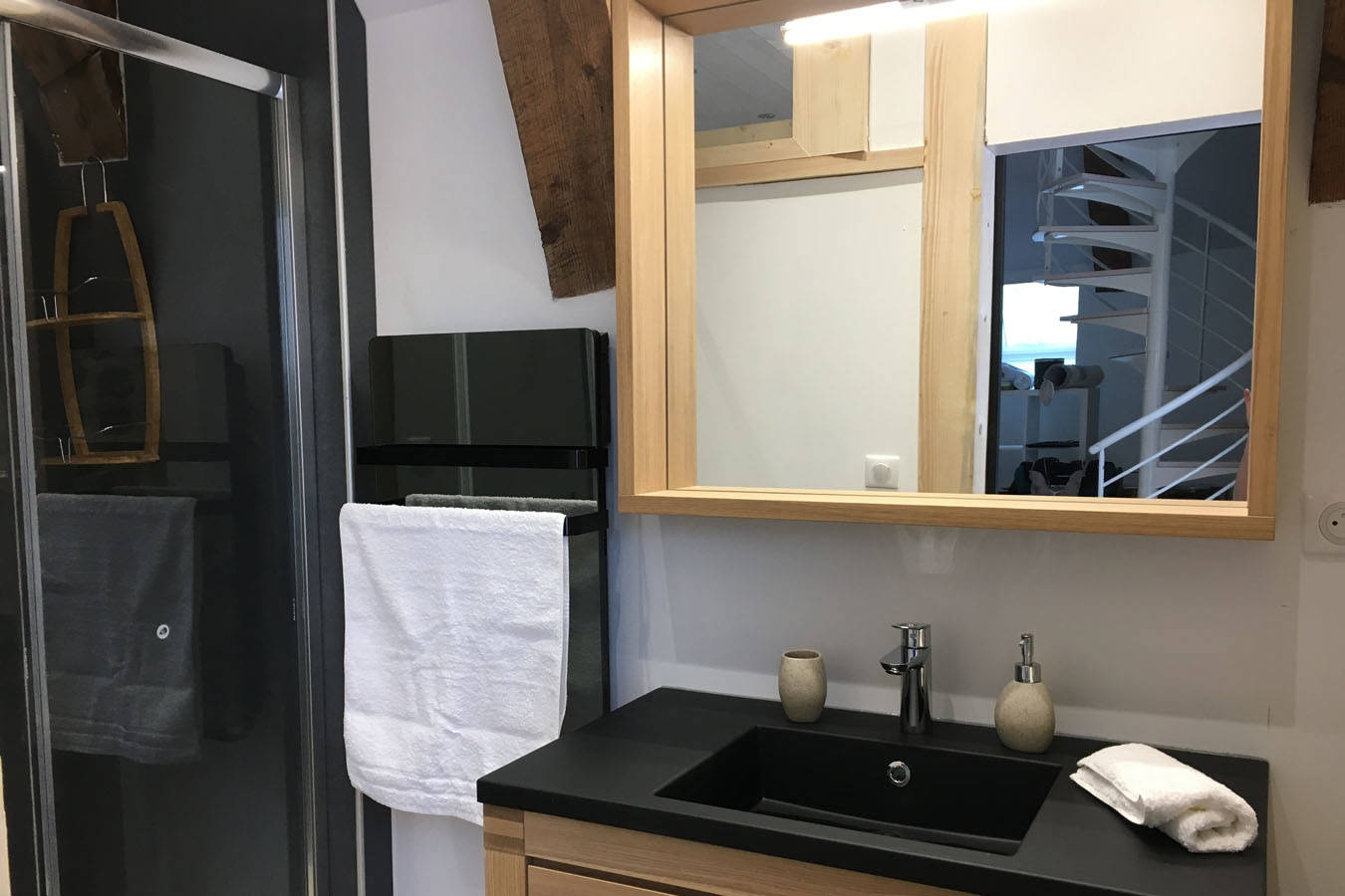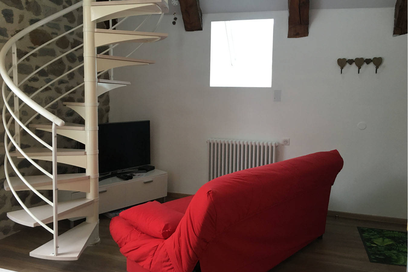 Appartement nature « Le Chevreuil ». Pour 2 personnes, il offre une grande baie vitrée donnant sur une terrasse avec une vue sur le cours d’eau et les sapins. Il est confortable, équipé : – d’une kitchenette avec four, lave-vaisselle, plaque induction, hotte, micro-ondes, réfrigérateur congélateur, cafetière électrique, grille pain, appareil à fondue, à raclette. – WC suspendu séparé. – d’une salle d’eau avec douche à l’italienne, sèche-serviette miroir, vasque sur meuble avec sèche cheveux. – d’une pièce de vie avec coin TV écran plat connecté. En duplex, se trouve une chambre avec literie confortable (en 180 x 200) avec protège draps, serviettes de toilette et tapis de bains de qualité fournis. WI-FI internet par la fibre. Emplacements voiture, motos. Terrain de boules. Linge et ménage compris dans le prix.
