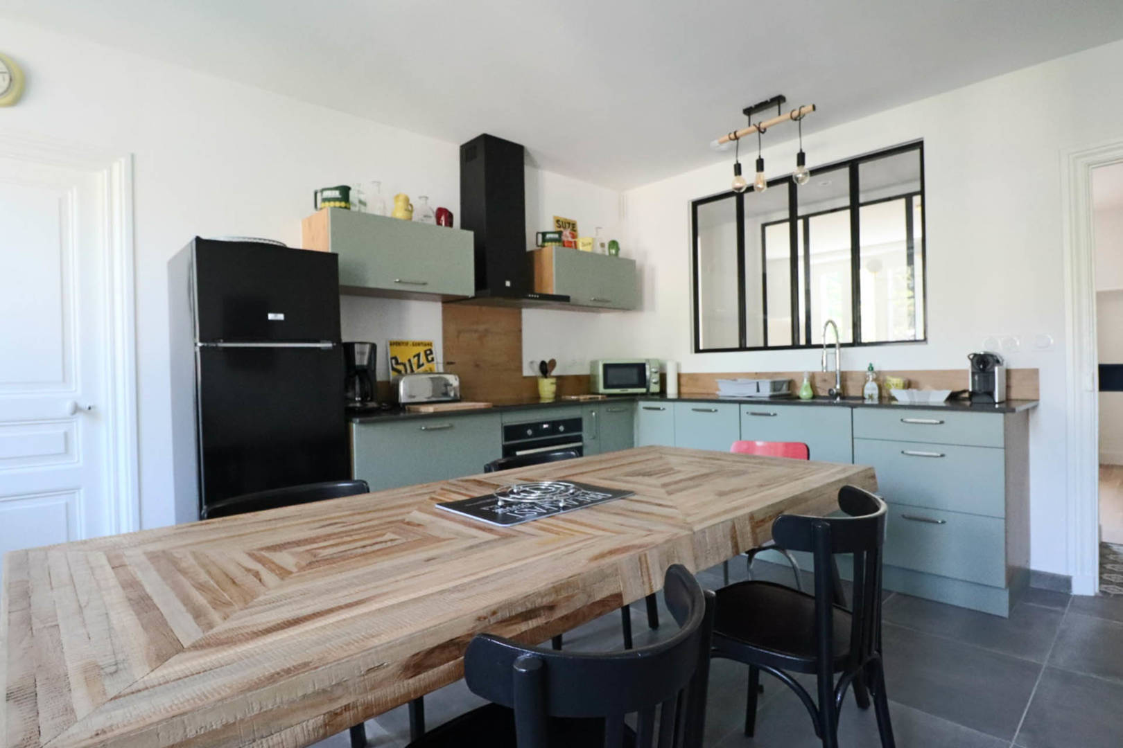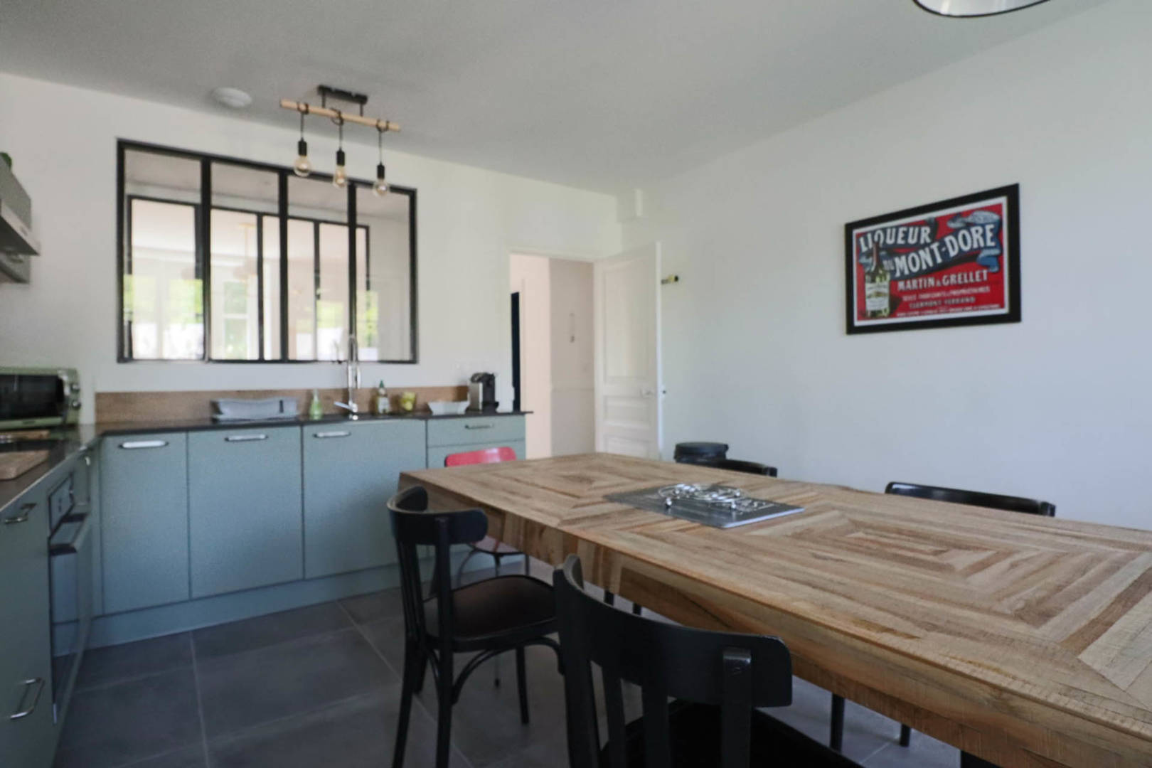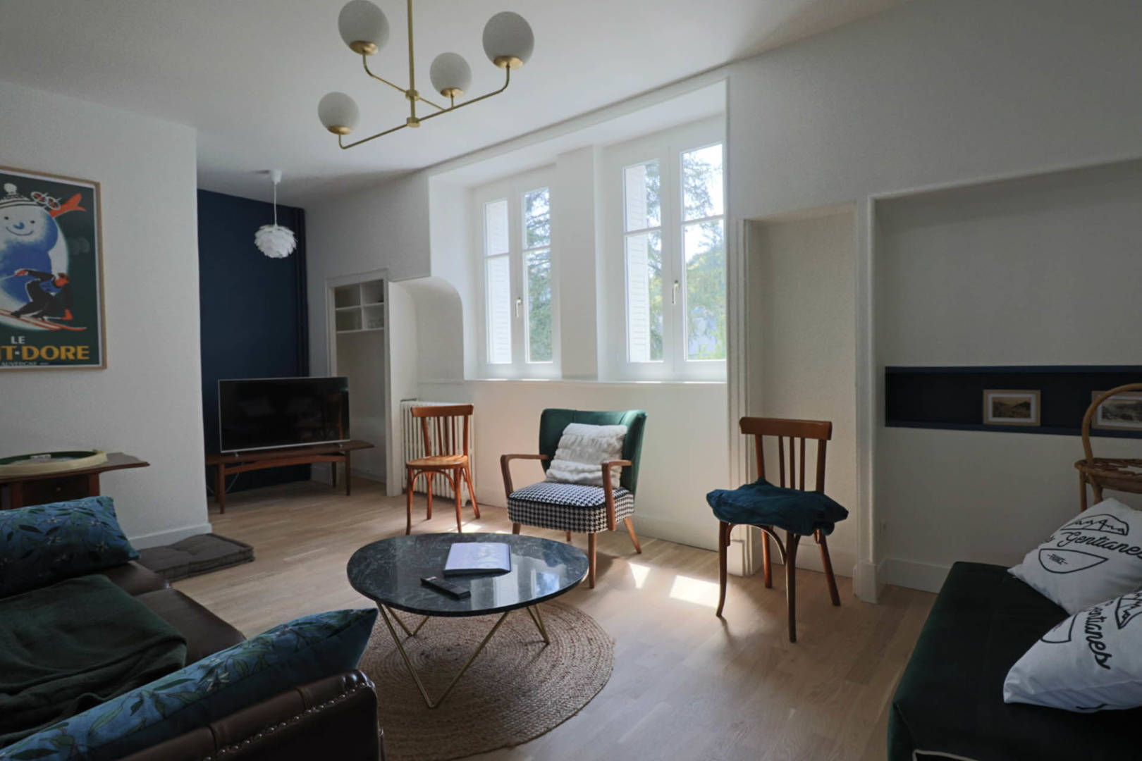 En plein cœur de La Bourboule, grand appartement 6 personnes de 88 m², au 2ème étage d’une splendide maison de maître, avec jardin, barbecue, mini-golf, baby-foot, ping-pong, parking, cave.