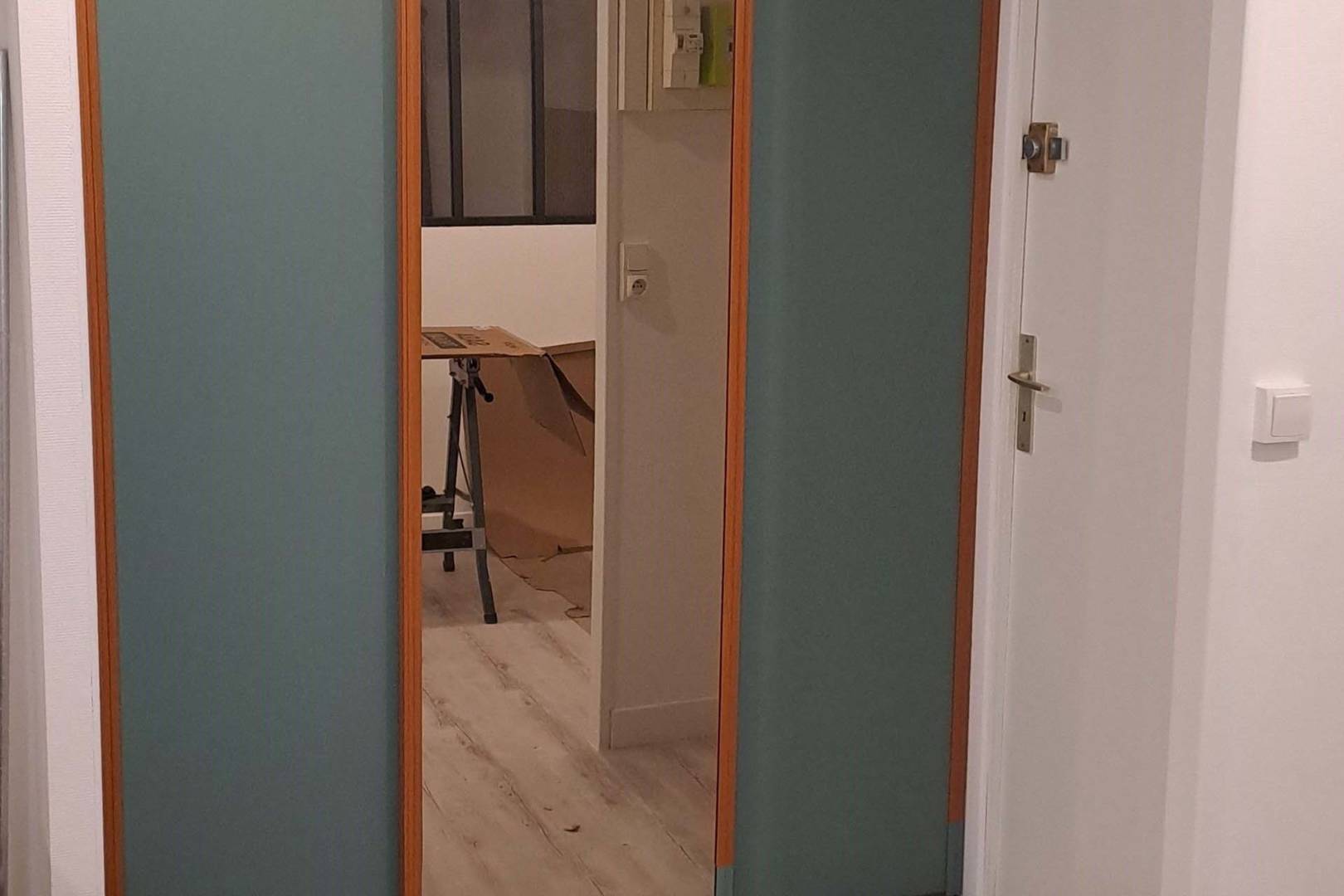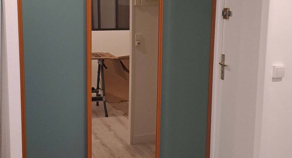Entrée avec grand placard, porte-manteaux, aspirateur.
