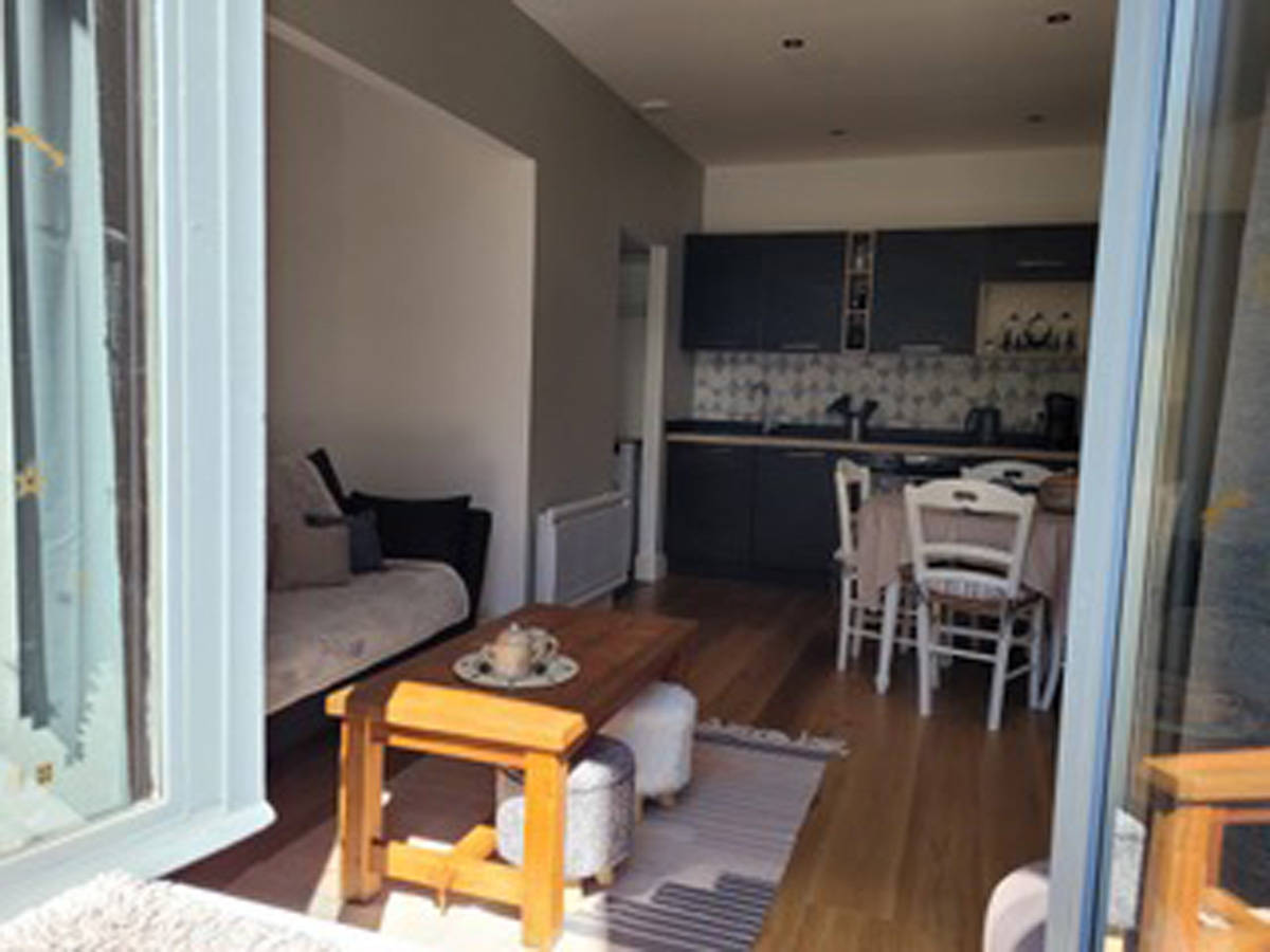 La pièce de vie spacieuse comprend une cuisine aménagée avec lave-vaisselle, plaques inductions, four, four micro-ondes, réfrigérateur, congélateur, lave-linge. Une table pour les repas et un espace salon avec télévision écran plat. Une belle entrée donne accès aux 2 chambres et à la salle de bain. Vous aurez à disposition(…)