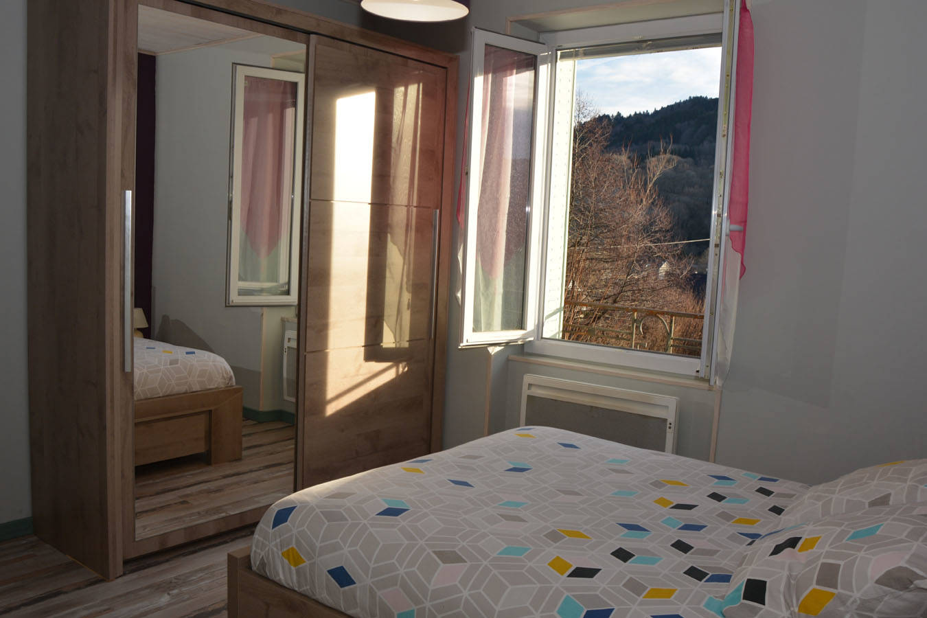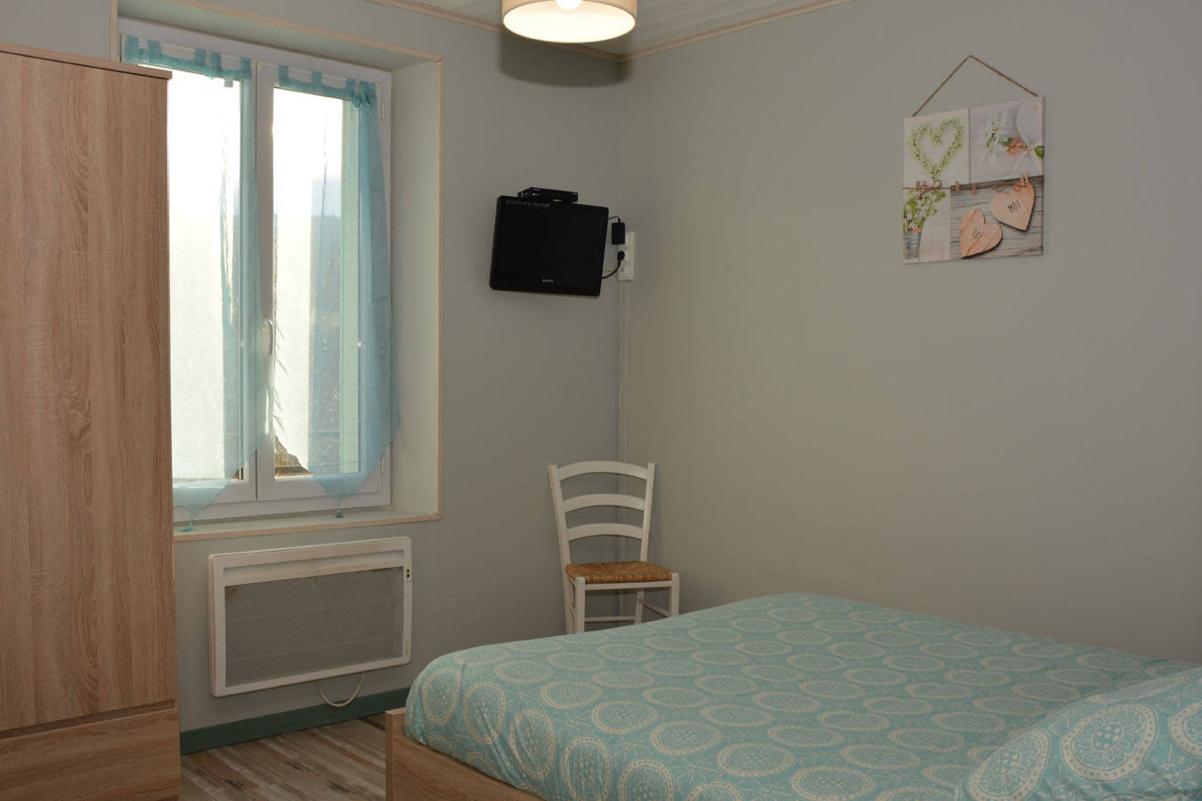 Il dispose de 2 chambres avec chacune un lit de 140x190cm (couettes fournies) ainsi qu’une grande armoire, une chambre possède même une télé !