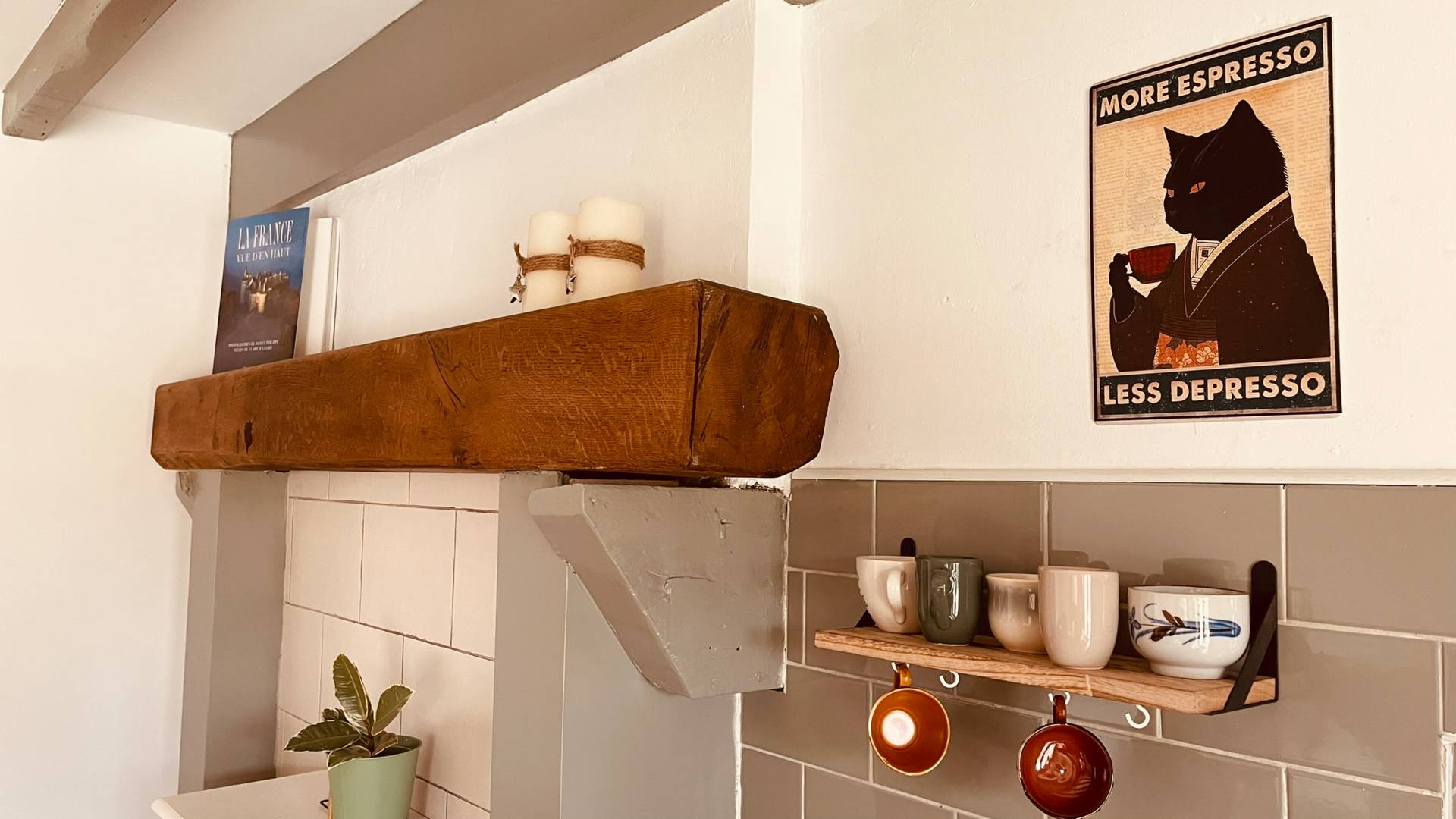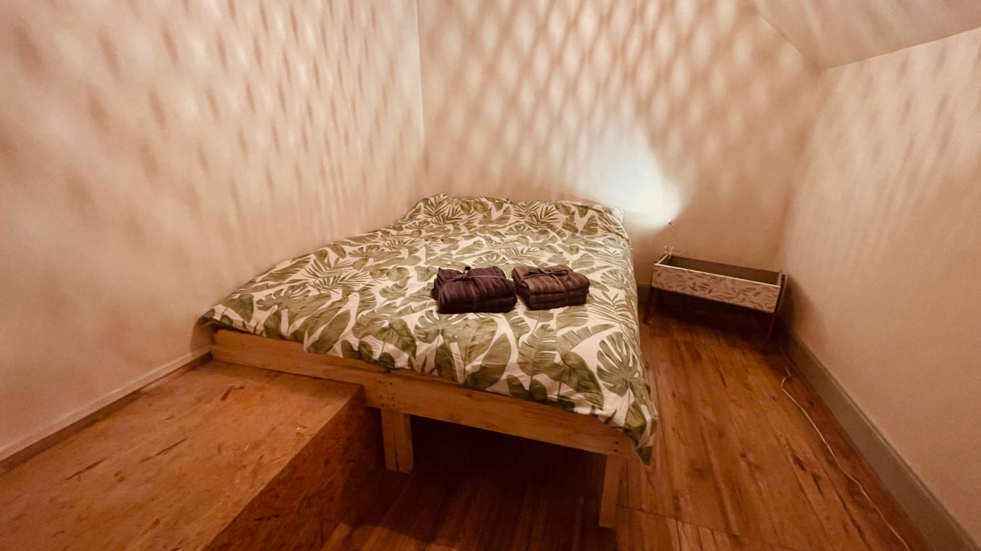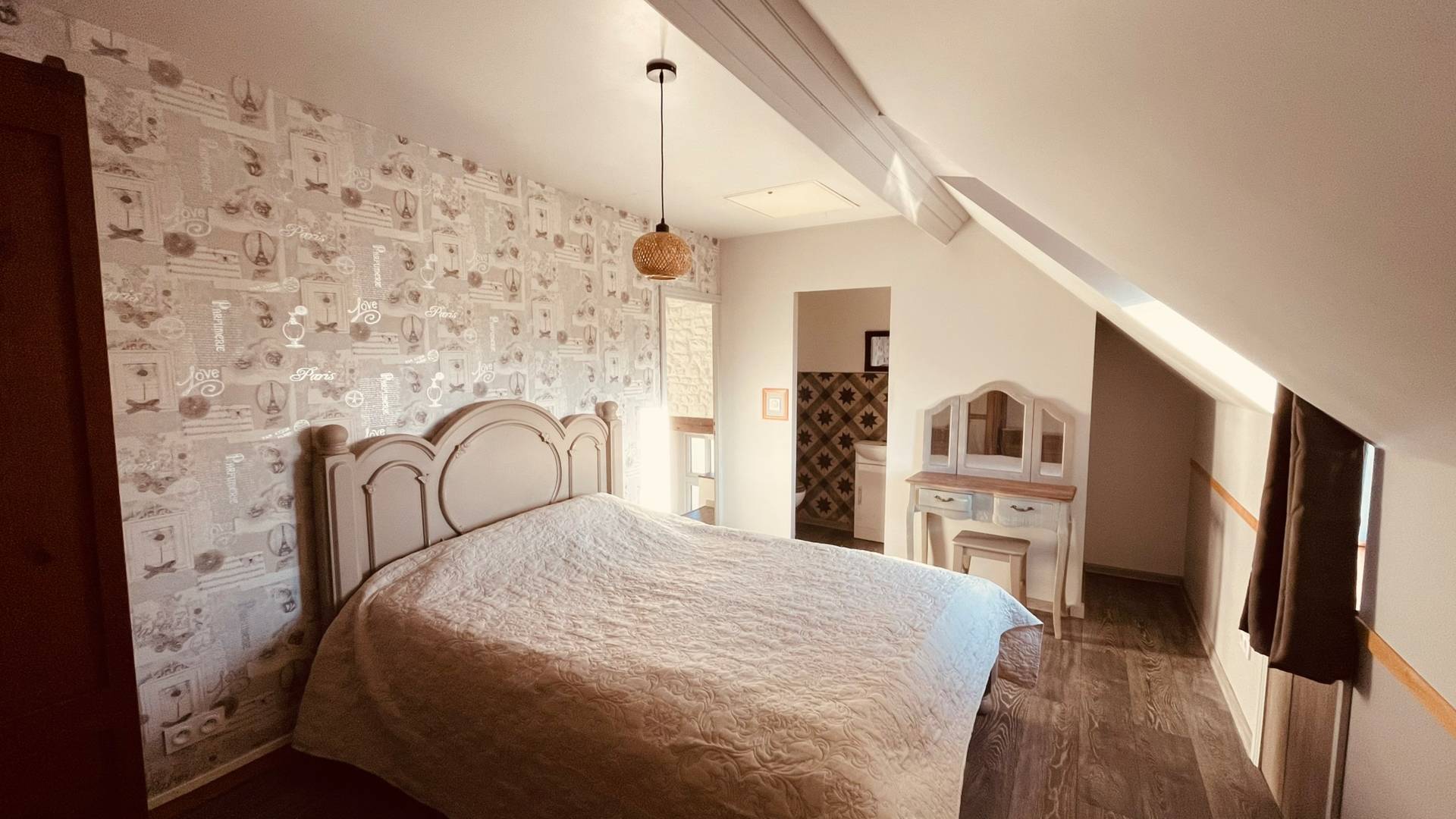 À l’arrière, une buanderie avec des toilettes mène à l’escalier vers l’étage.