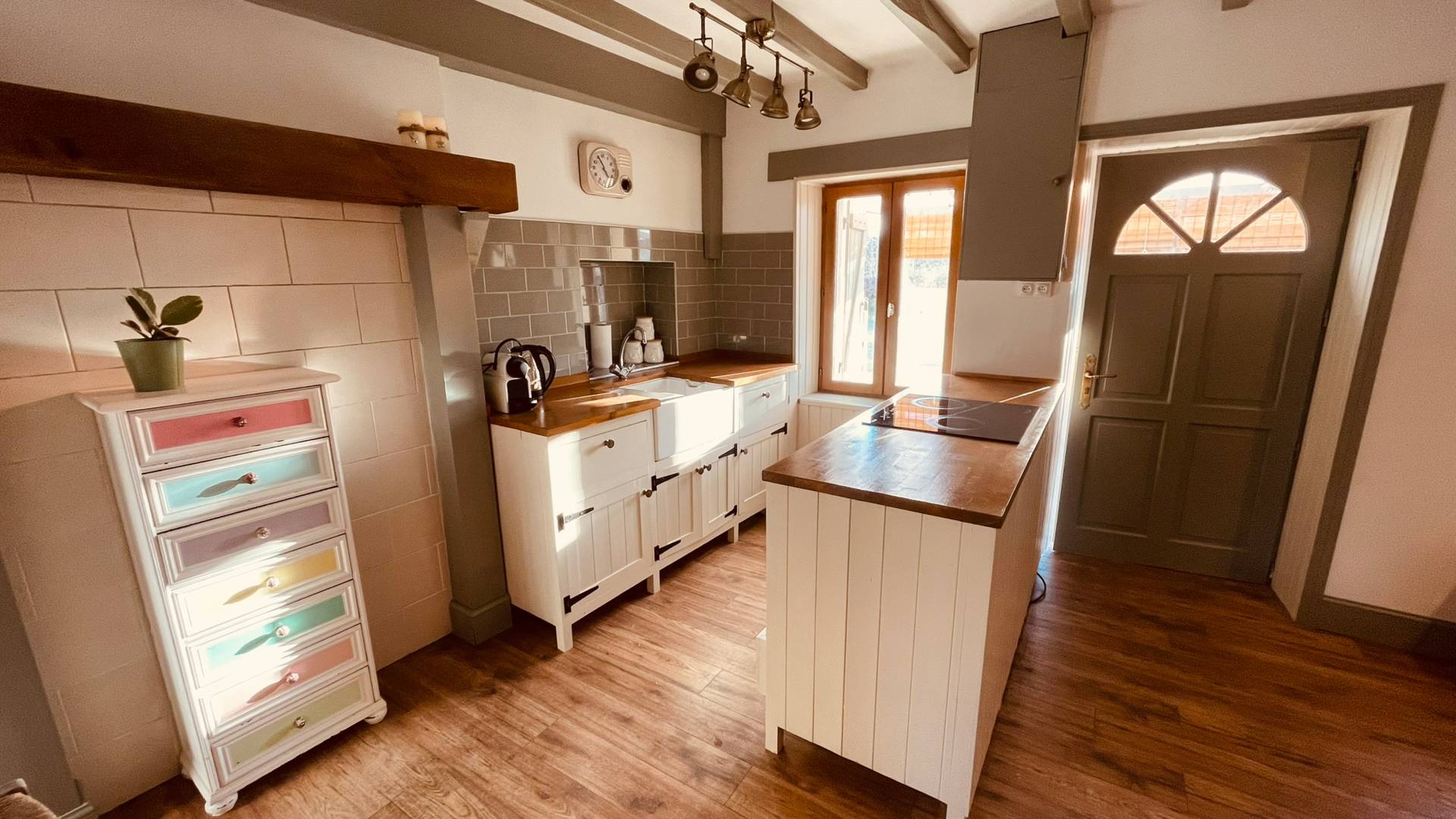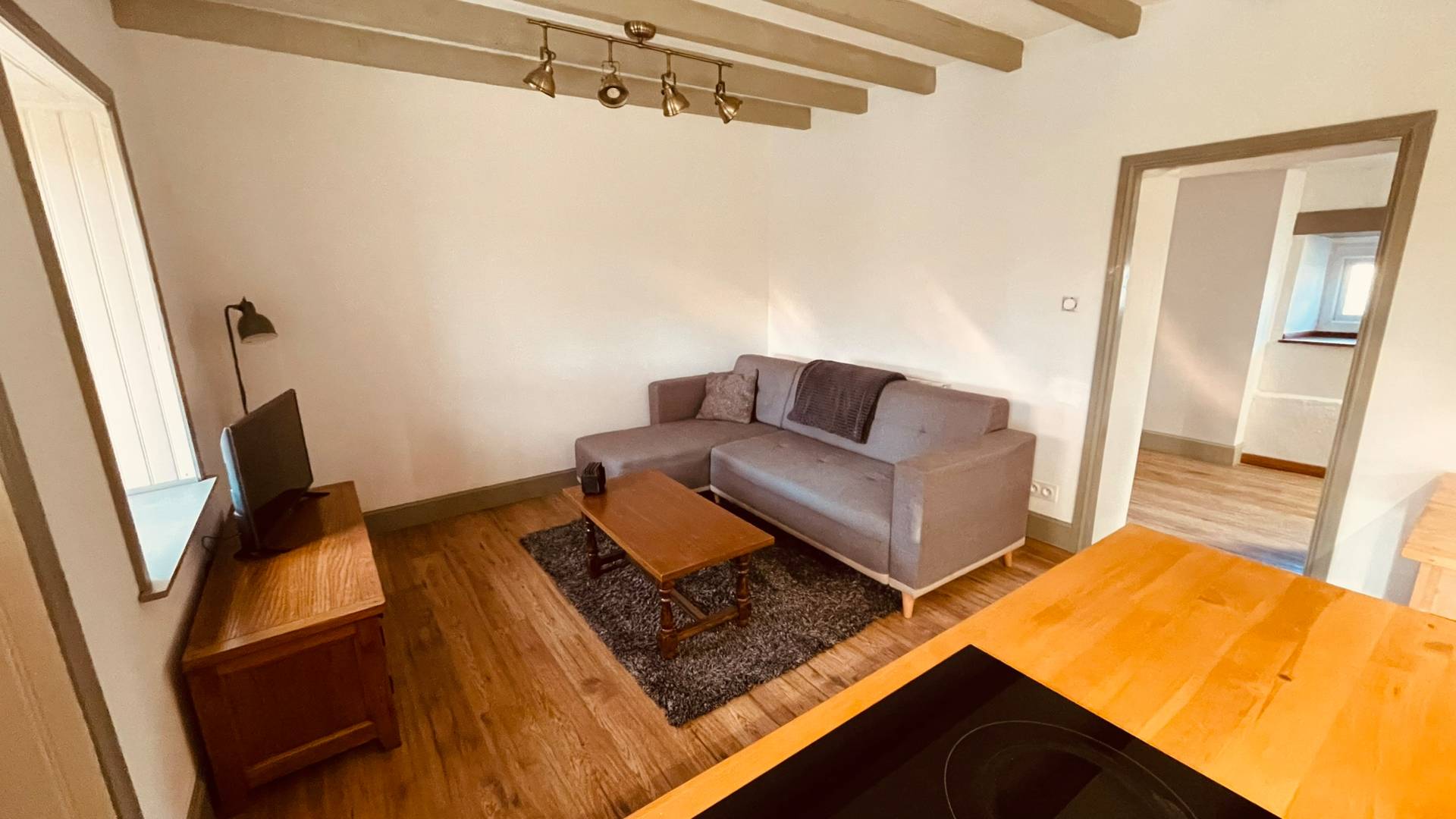 Au rez-de-chaussée, vous entrez dans une agréable véranda, un espace idéal pour profiter des premiers rayons du soleil au printemps. Ensuite, vous découvrez un salon et une cuisine ouverte, parfaits pour cuisiner et se détendre.