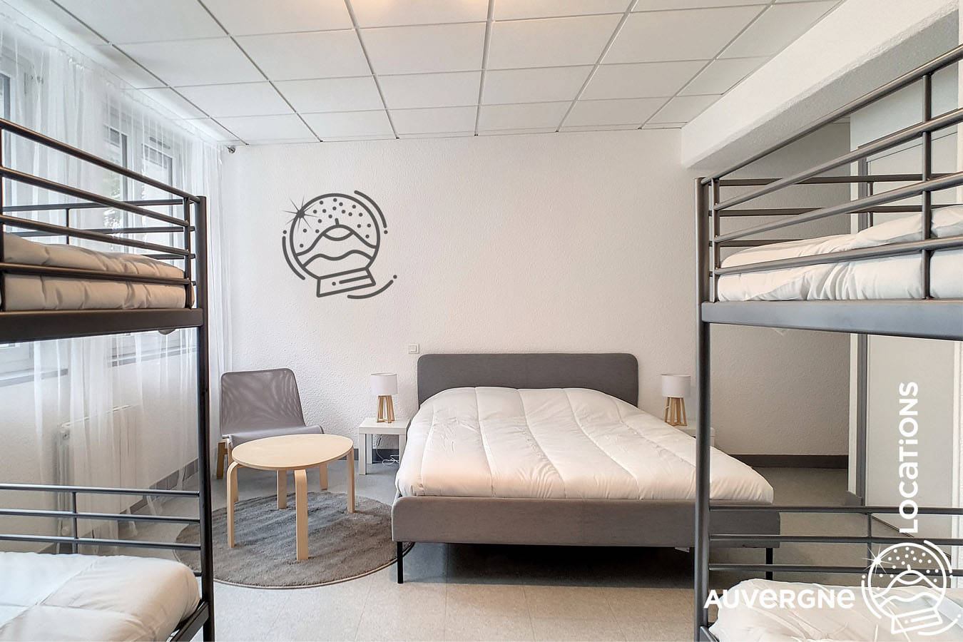 Cet hébergement très fonctionnel peut accueillir jusqu’à 12 personnes, dans une atmosphère simple et épurée, pour vos réunions de groupe ou tout simplement pour les grandes familles !