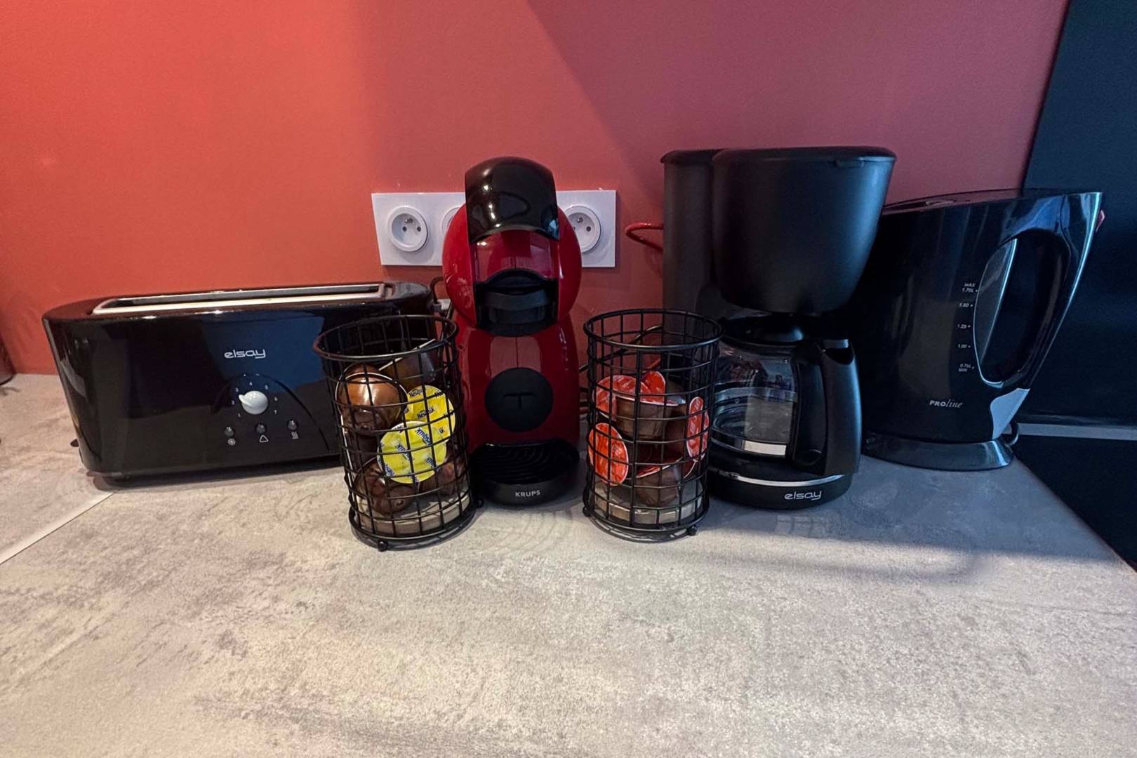 Cuisine entièrement équipée (plaques, four/micro-ondes, lave vaisselle, cafetière, bouilloire, grille pain, nécessaire de cuisine, vaisselle…)