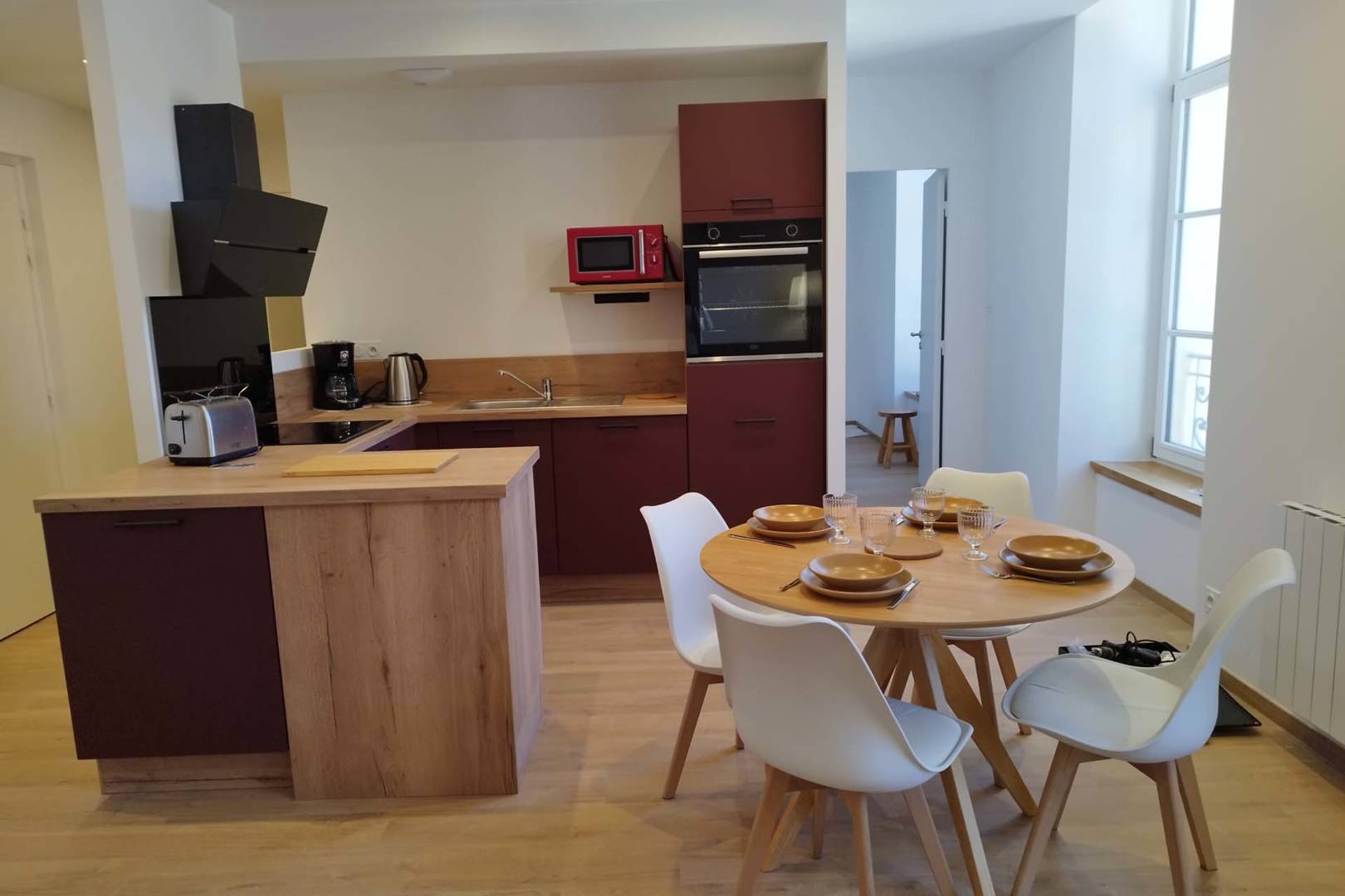 Situé dans une résidence de style Art-Déco refaite à neuf face aux Thermes de La Bourboule. Appartement neuf au second étage avec ascenseur et vue sur la montagne. Une grande pièce à vivre avec cuisine américaine entièrement équipée.