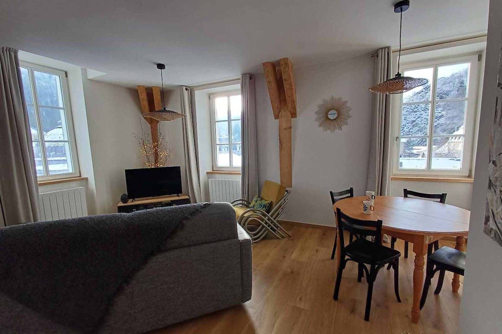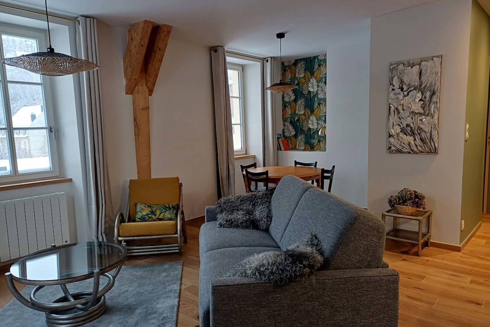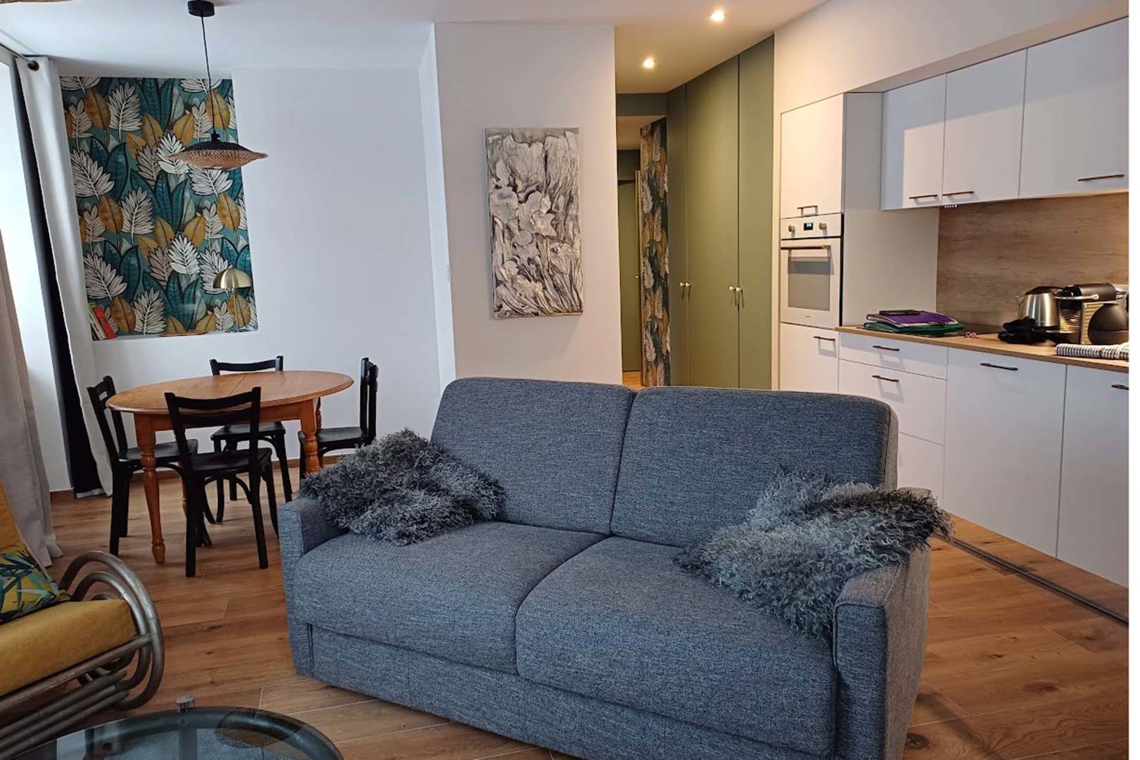 Ce logement pouvant accueillir jusqu’à 4 personnes, est situé dans une résidence de prestige art déco, entièrement rénovée face aux thermes, en plein centre ville, son emplacement est unique. Au troisième étage avec ascenseur, très lumineux, il offre de superbes vues au sud et à l’ouest.