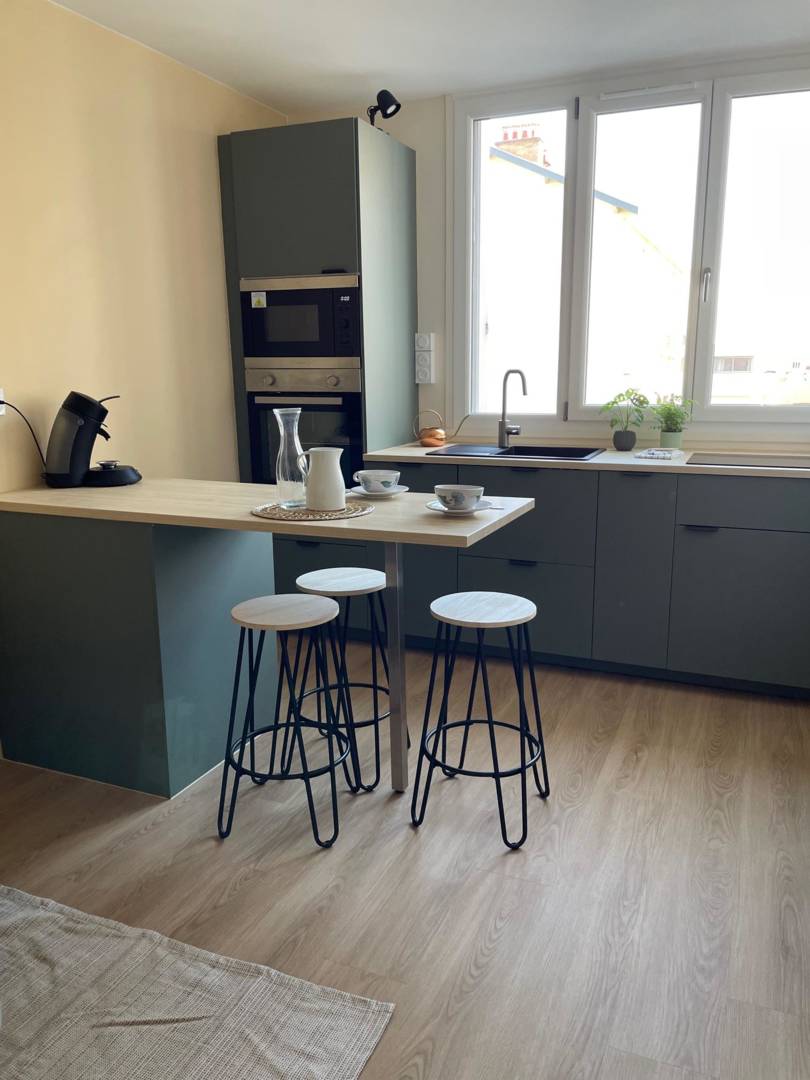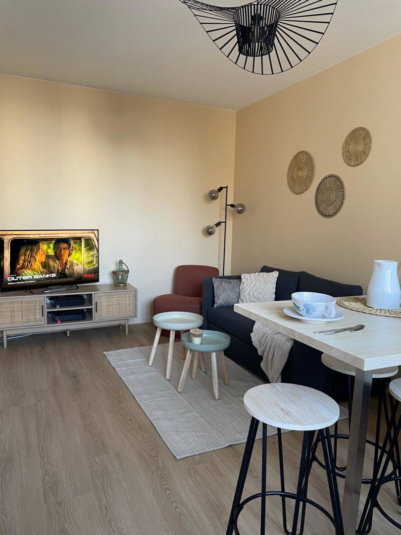 Entièrement refait à neuf, vous trouverez dans cet appartement meublé tous les équipements afin de rendre votre séjour des