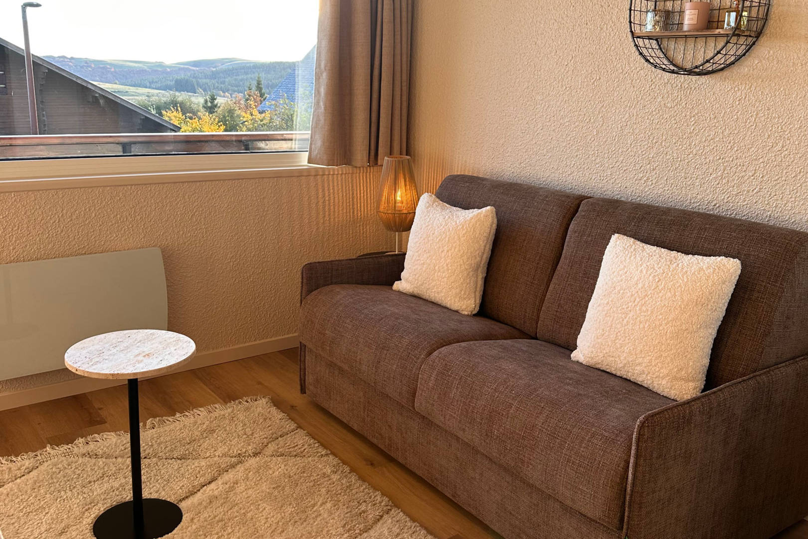 – Canapé-lit confortable (140×190) avec matelas qualité hôtelière et couette (220×240)
