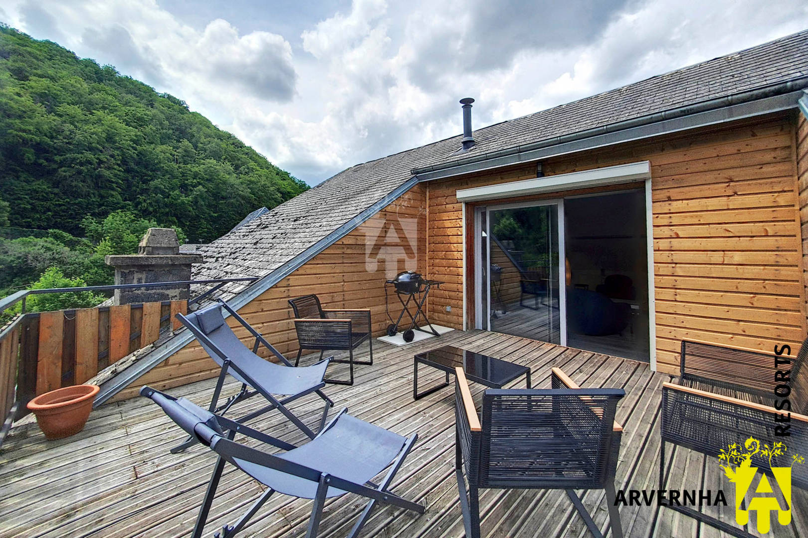 Cet appartement pour 6 personnes doit son nom au volcan qui lui fait face, sur lequel vous aurez également une vue imprenable. Il se situe en plein cœur du village de Murol et vous pourrez admirer depuis les chambres le château surplombant la ville.