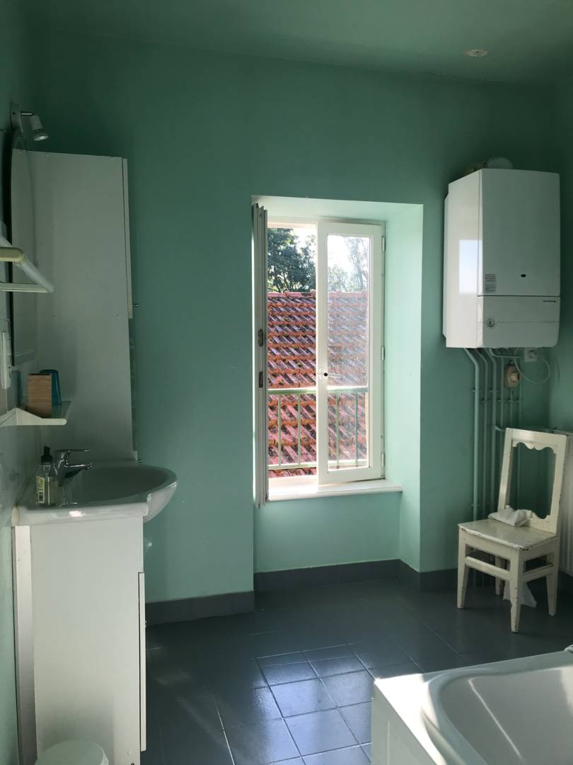 A la sortie du village , à la fin du mur d’enceinte .; portail noir.