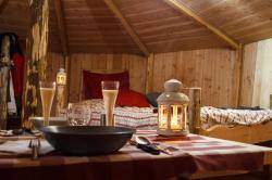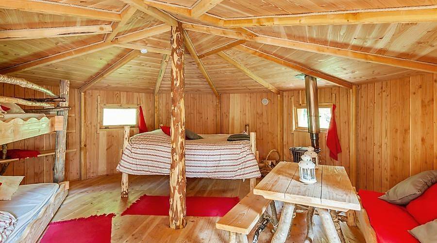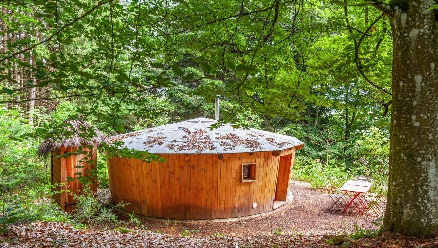 Ronde et de plein pied, voici leur nouvelle cabane/yourte… L’esprit d’une yourte marié au confort d’une cabane isolée et chauffée confortablement, la seule également où les repas peuvent être pris aussi bien en extérieur qu’à l’intérieur… Les yourtes sont sans eau, ni électricité, pour plus d’aventure… Néanmoins, vous aurez libre accès à une grande salle commune “la grange” située dans la maison des propriétaires, une ancienne ferme traditionnelle en pierre. Sur place, de nombreuses activités sont possibles : pour les sportifs, des randonnées au départ des yourtes, ou des sorties VTT à assistance électrique mais également ping-pong, basket ou pétanque. Et pour les amateurs de calme, la piscine couverte (abri haut) vous attend l’été… Une expérience à vivre pour une nuit, en formule chambre d’hôte, ou pour un séjour plus long, d’une semaine, en gestion libre.