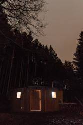 La nouvelle cabane chez Florence et Philippe : la yourte en bois « Les bolets ».Son « look » extérieur fait penser à une yourte… mais son intérieur est bien celui d’une cabane.