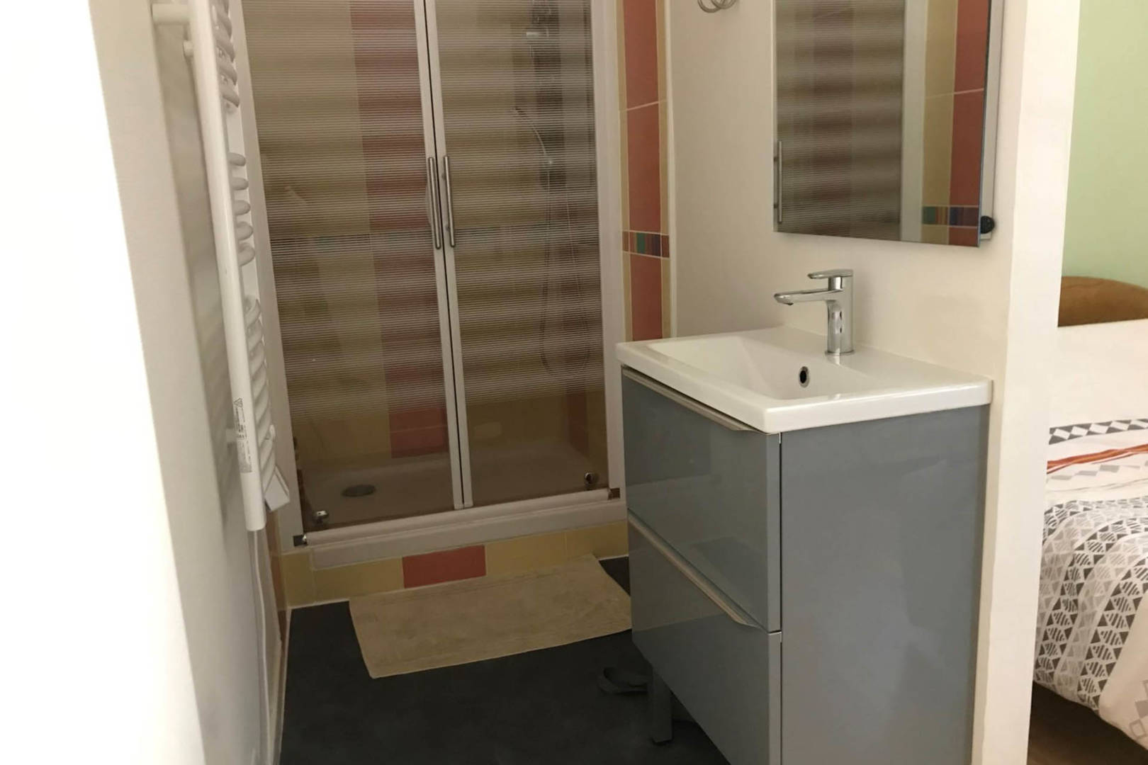 – d’une chambre de 12 m² avec un lit double (140 cm) et une salle d’eau