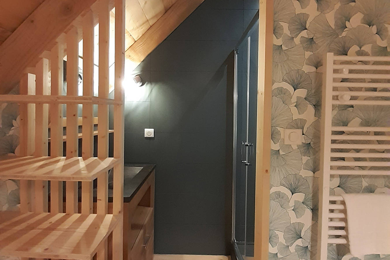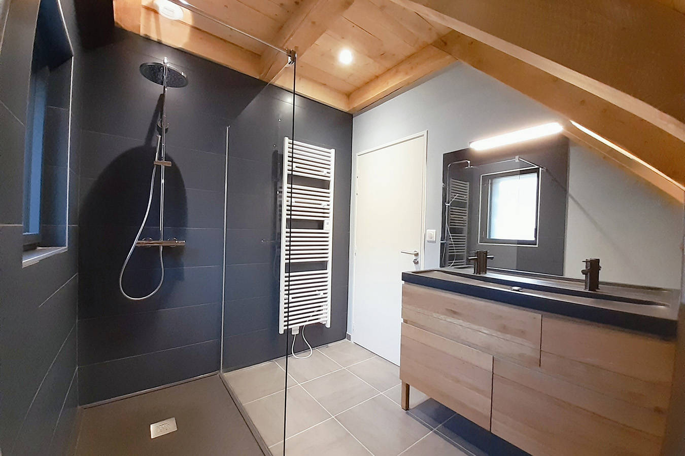 Salle d’eau ouverte sur chambre (douche italienne)