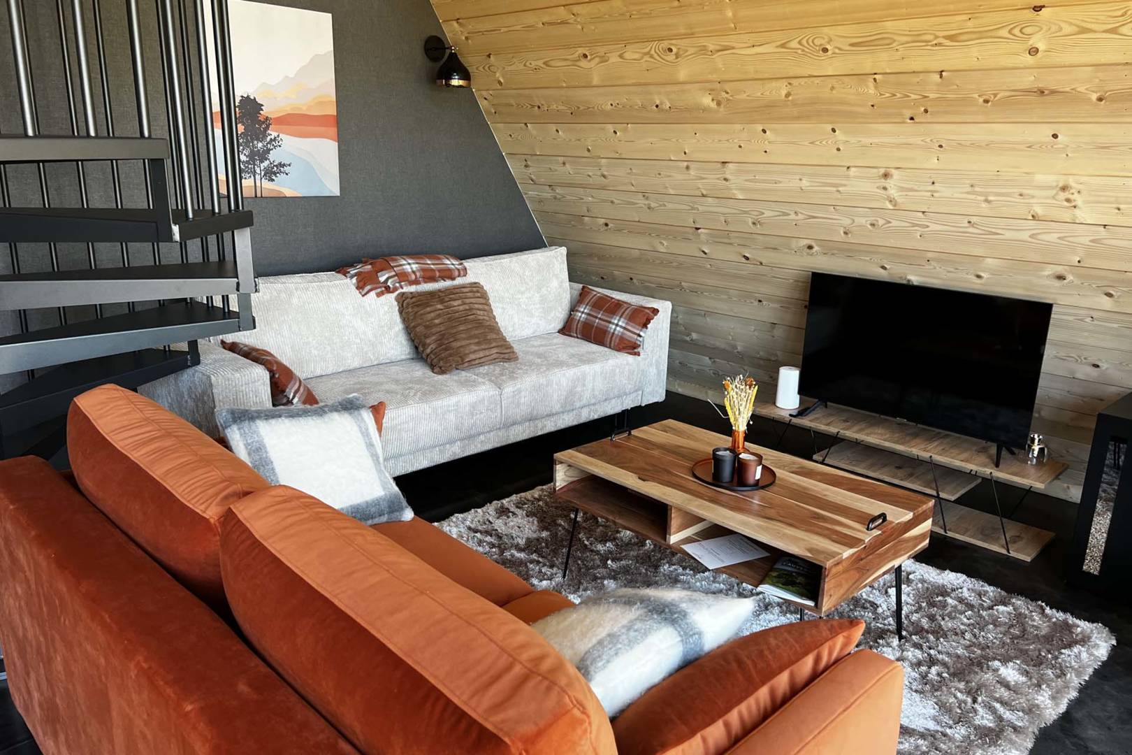 Le chalet a une capacité de 6 personnes et peut être loué avec le chalet Delta d’à coté pour une capacité de 12 personnes.