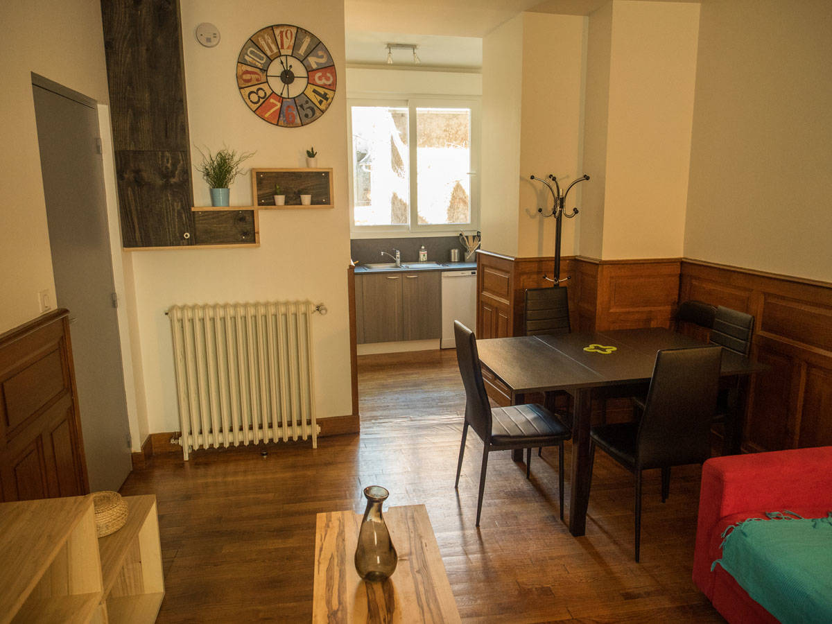 Equipement : wifi, TV, lave-vaisselle, four micro-ondes, plaque à induction, réfrigérateur, congélateur, bouilloire, grille pain, cafetière, appareil à raclette, machine à laver, sèche linge, digicode à l’entrée de l’immeuble, casier à ski individuel.