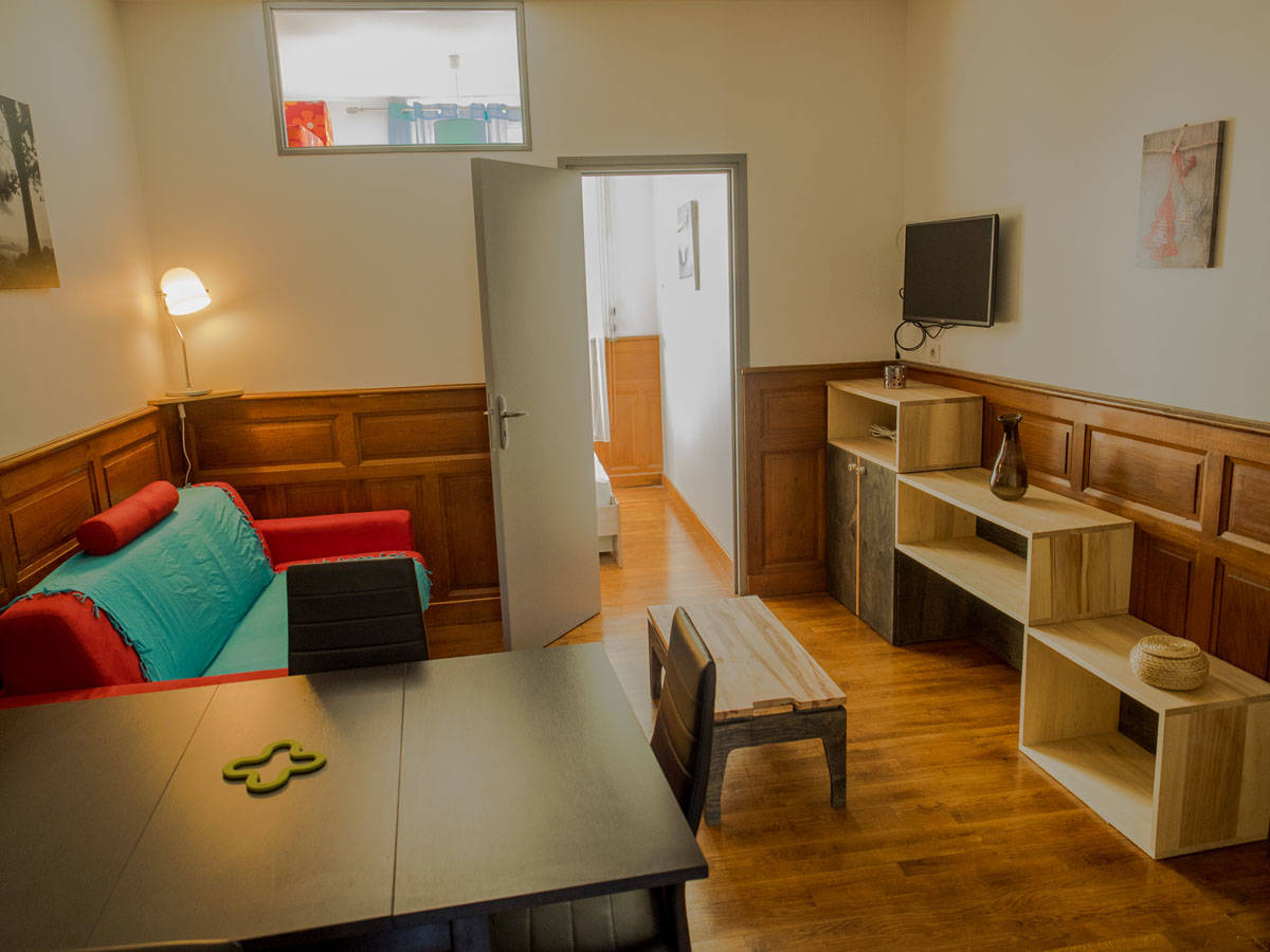 Appartement tout confort de 31 m² au RDC de la résidence les Champs d’Auvergne comprenant : une chambre avec un lit 140, un séjour avec canapé lit, un coin cuisine, une salle d’eau avec douche et WC.