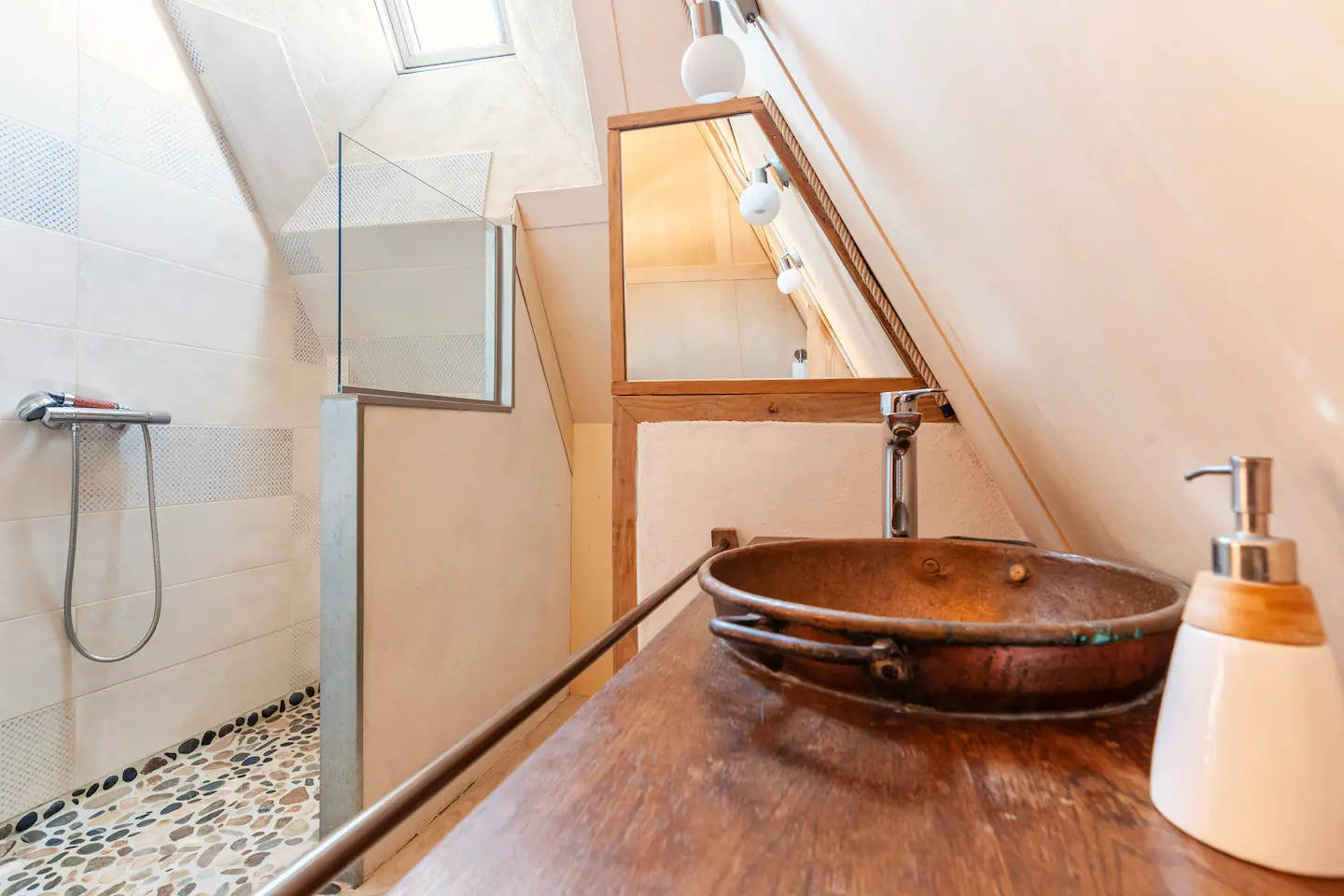 Les Combles du Lac, c’est un appartement indépendant rénové avec des matériaux naturels. Literie neuve et de qualité. Espace cuisine confortable. Douche spacieuse et WC ouverts sur la chambre parentale. Location dédiée au calme et au repos