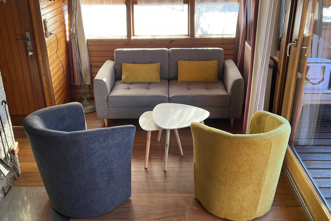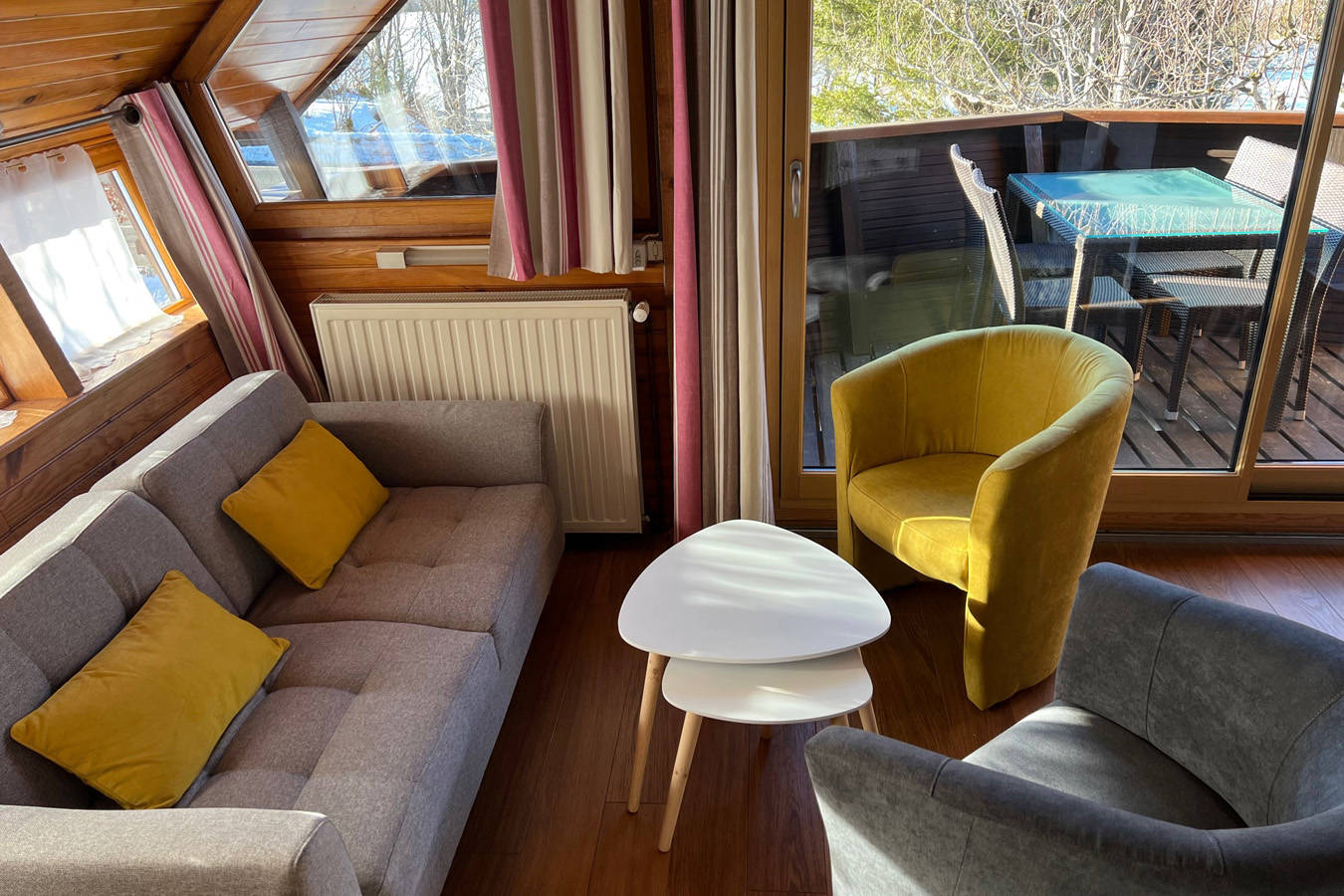 – Une pièce de vie avec un coin salon, canapé et fauteuils, TV et lecteur DVD.