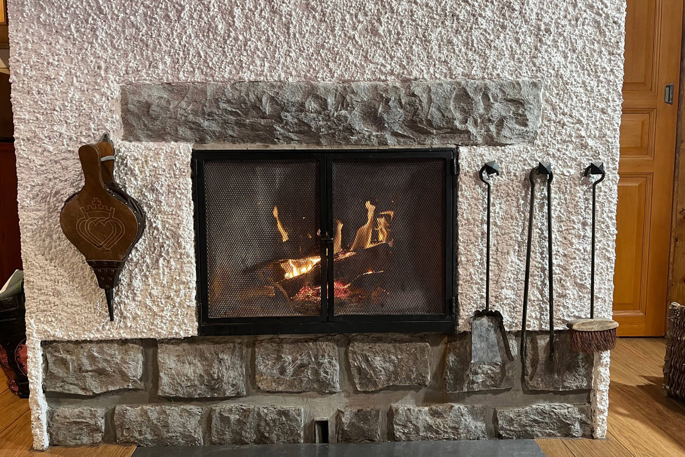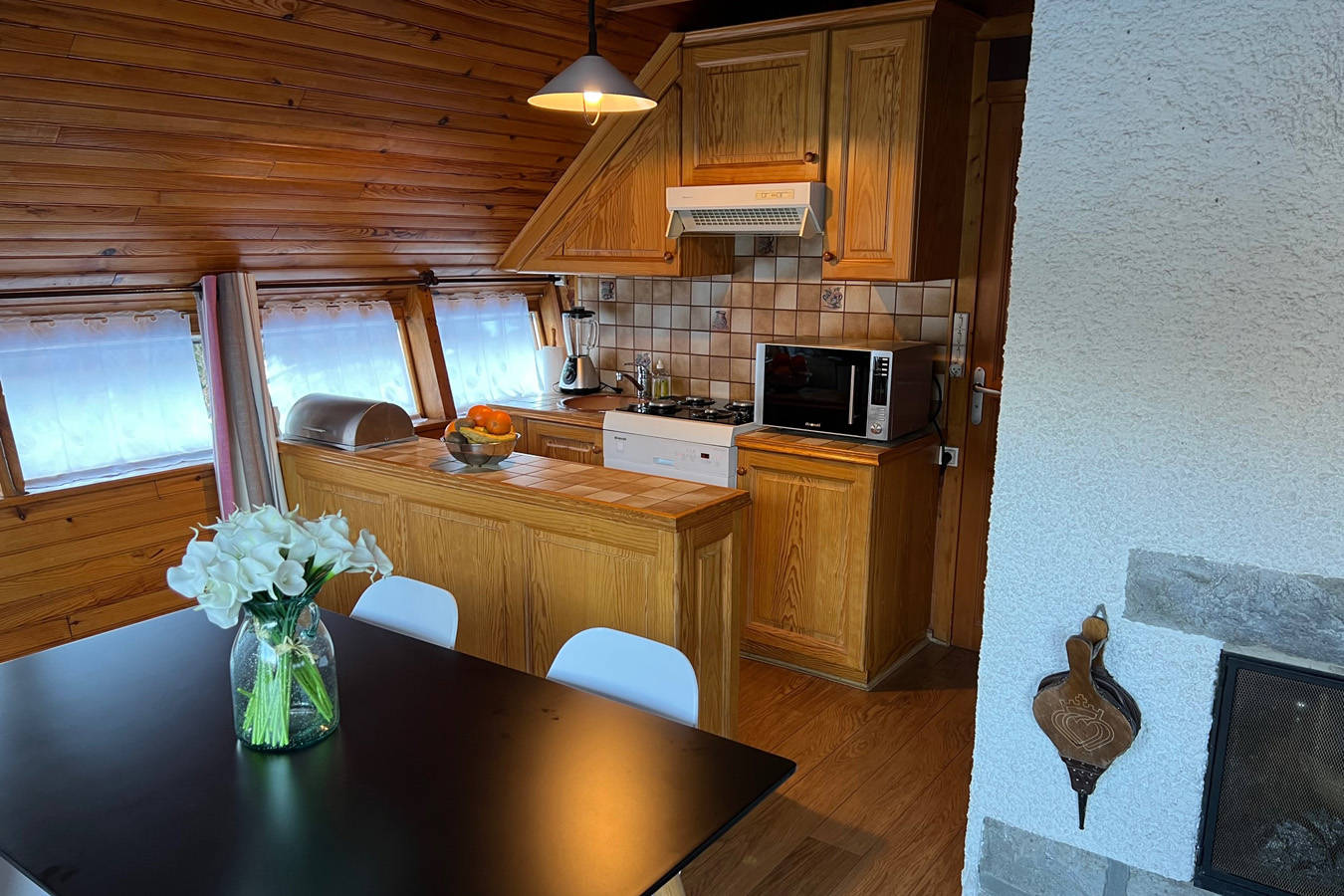 Logement tout confort avec une cheminée et un balcon face au Sancy comprenant :