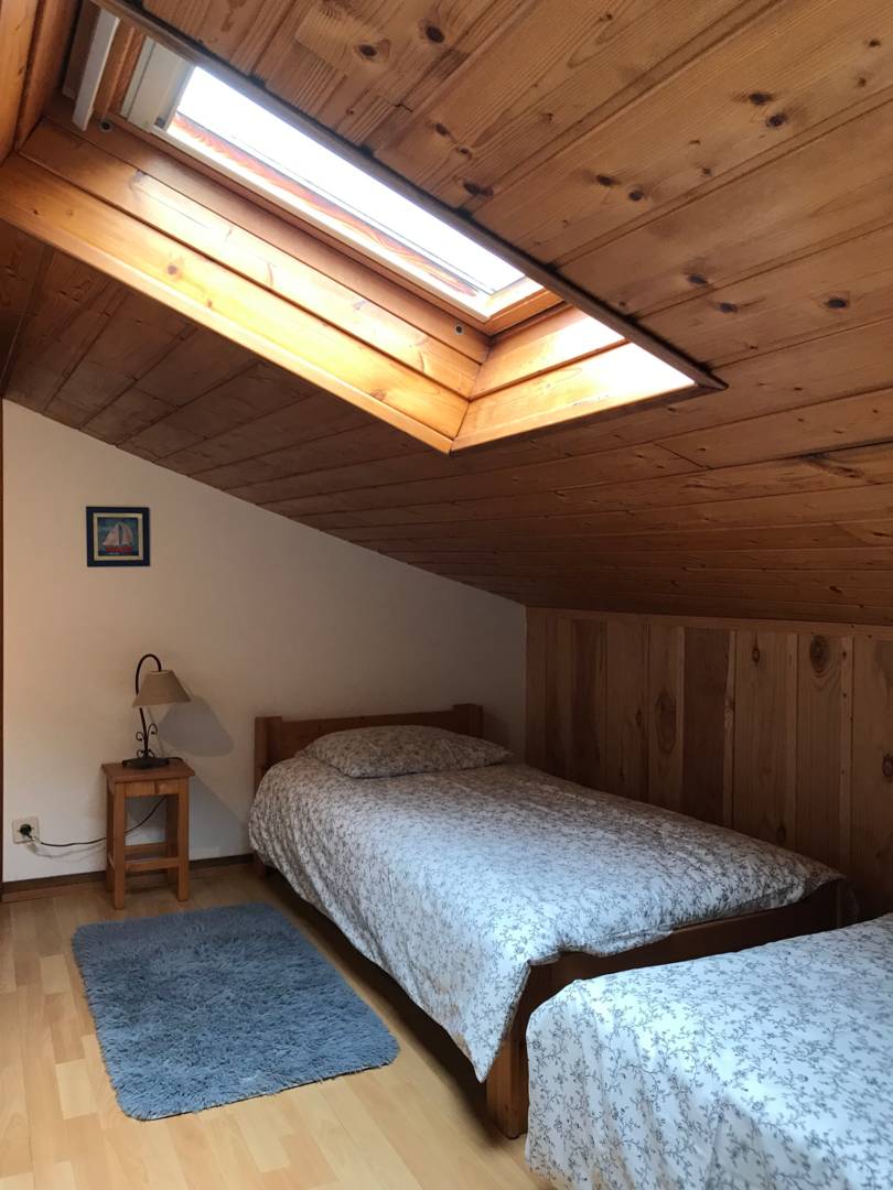 Au rez-de-chaussée : Salon avec canapé convertible, où vous trouverez des jeux de sociétés pour tout âge, salle à manger équipée d’une table avec rallonges, cuisine équipée d’une gazinière avec four, frigo, congélateur, four à micro-onde, lave-vaisselle, cafetière et bouilloire électrique, grille-pain, fritteuse, appareil à raclette, pierrade, torchons…… Toilettes séparées, salle de bain avec douche, vasque, sèche-serviettes, lave-linge, sèche-cheveux. A l’étage : Deux chambres l’une avec un lit double 140 X 200 un coin détente et un espace bébé avec lit à barreaux, jouets et livres premier âge ; l’autre avec deux lit 90 X 190, bureau avec papier, coloriage, crayons de couleurs, jouets et livres. Literie de qualité et pour votre confort, tous les lits sont faits à votre arrivée.