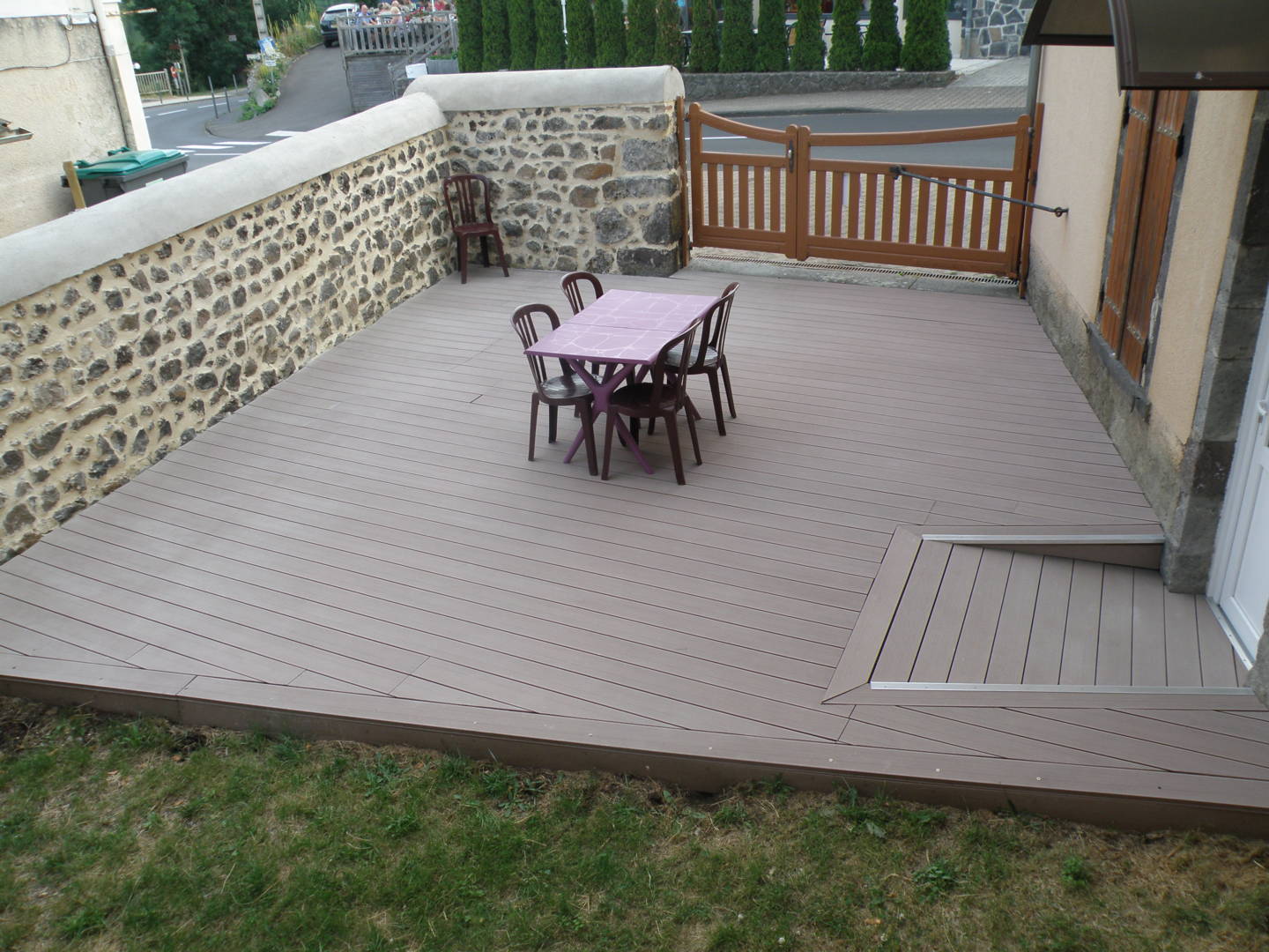 Terrasse privative fermée de 40 m² avec salon de jardin.