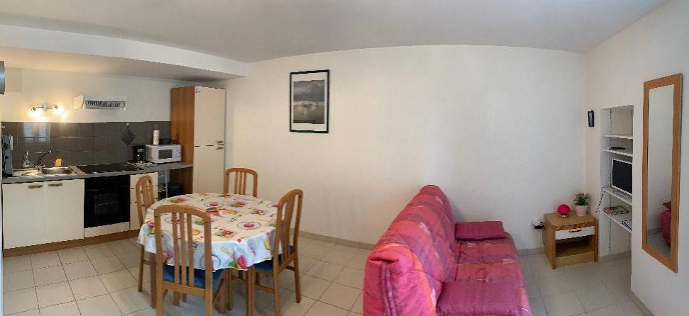 A 50m de la plage, meublé de 35m2 en RDC pour 3 personnes. Composé d’1 pièce de vie avec cuisine entièrement équipée et coin salon canapé/TV. 1 chambre (lit 140+1 lit 90 superposé). Salle d’eau avec douche.