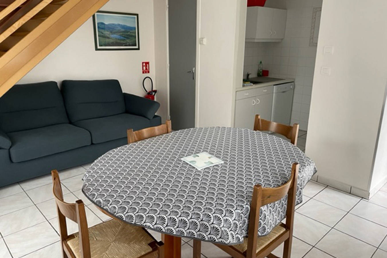 -un séjour avec canapé + une cuisine équipée donnant sur une(…)