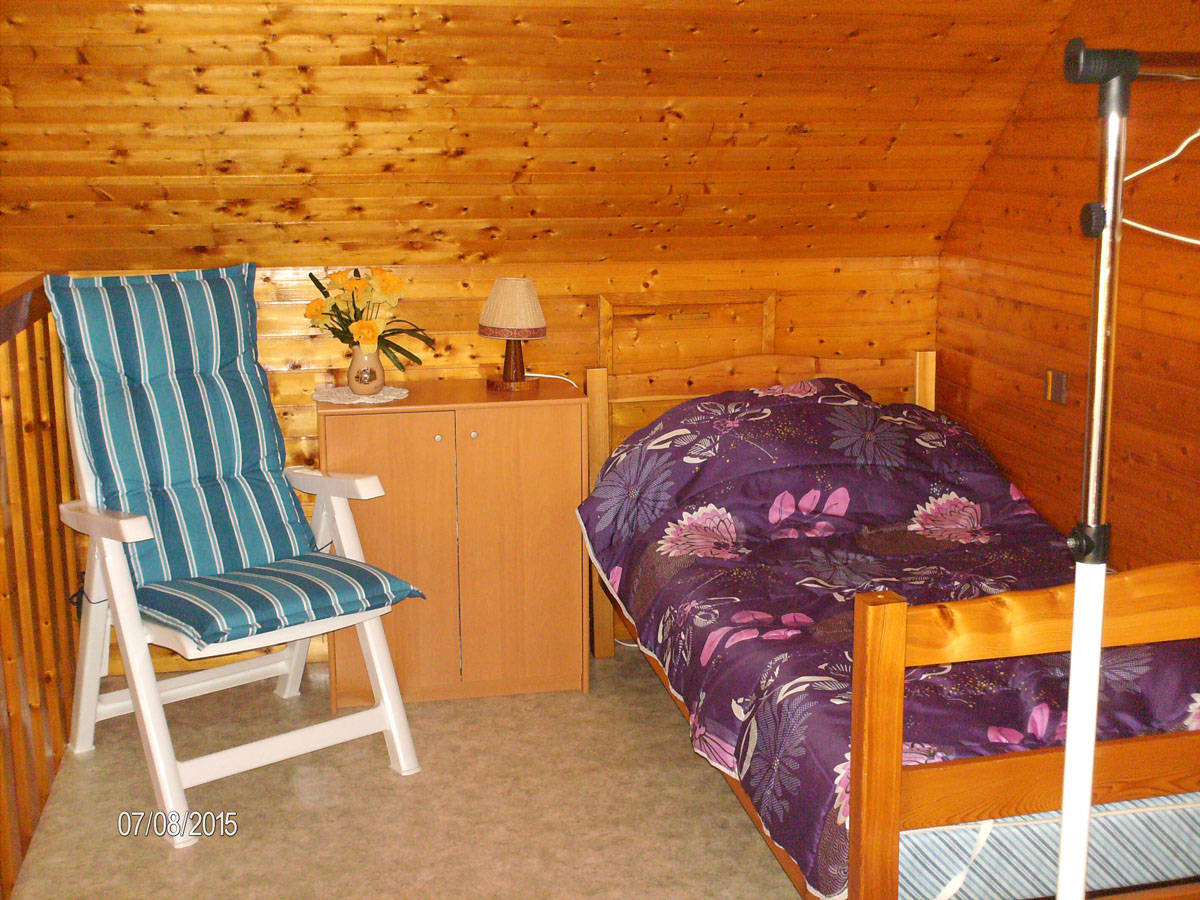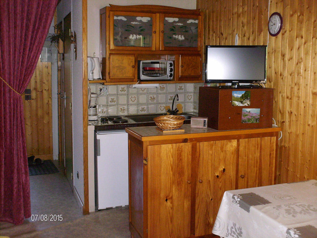 Duplex de 35 m² avec coin cuisine et séjour, une salle de bain avec douche et WC, une mezzanine avec 2 lits 1 personne, commode, penderie, un lit 2 personnes, jardin, parking privé.