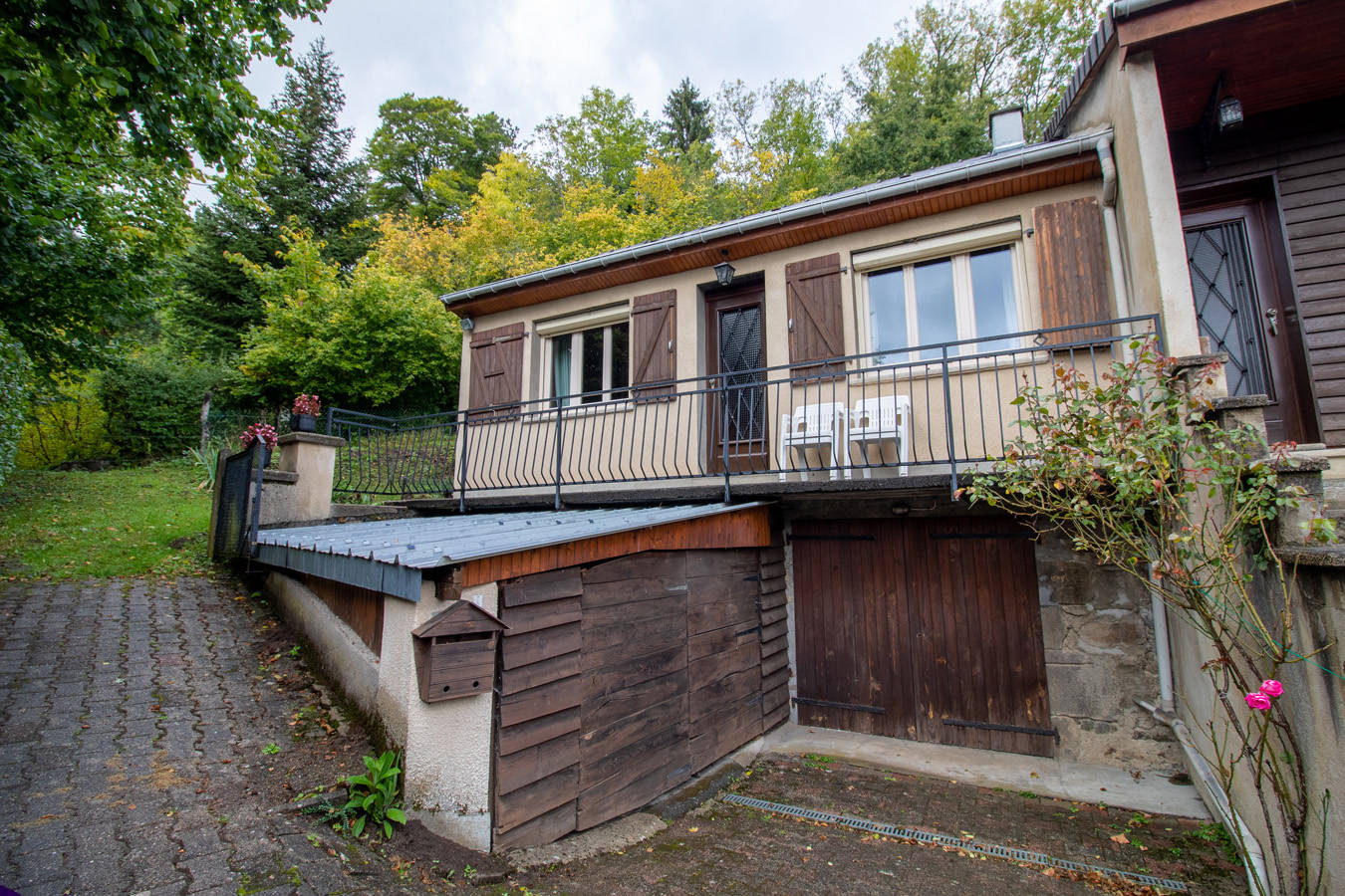 Petite cour privée et ombragée sur le côté de la maison.